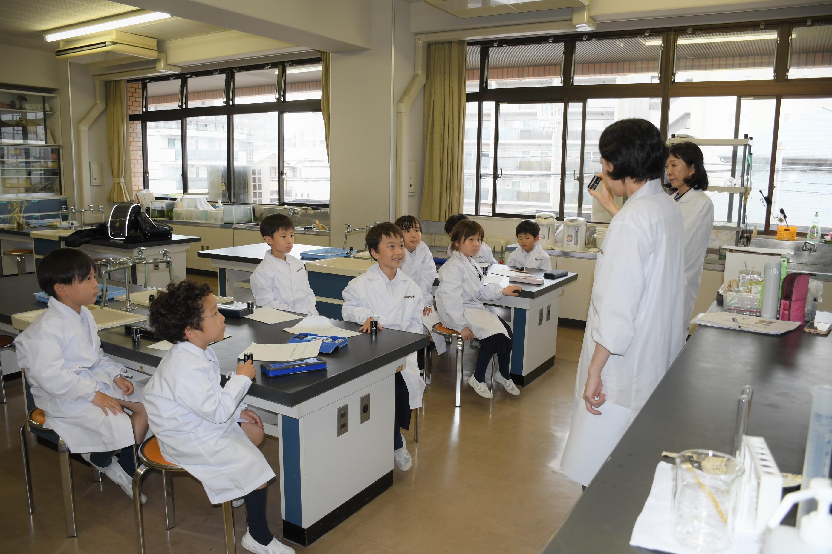 白衣に身を包めば、小さな科学者。毎回違った実験で、科学の不思議を学びます。
