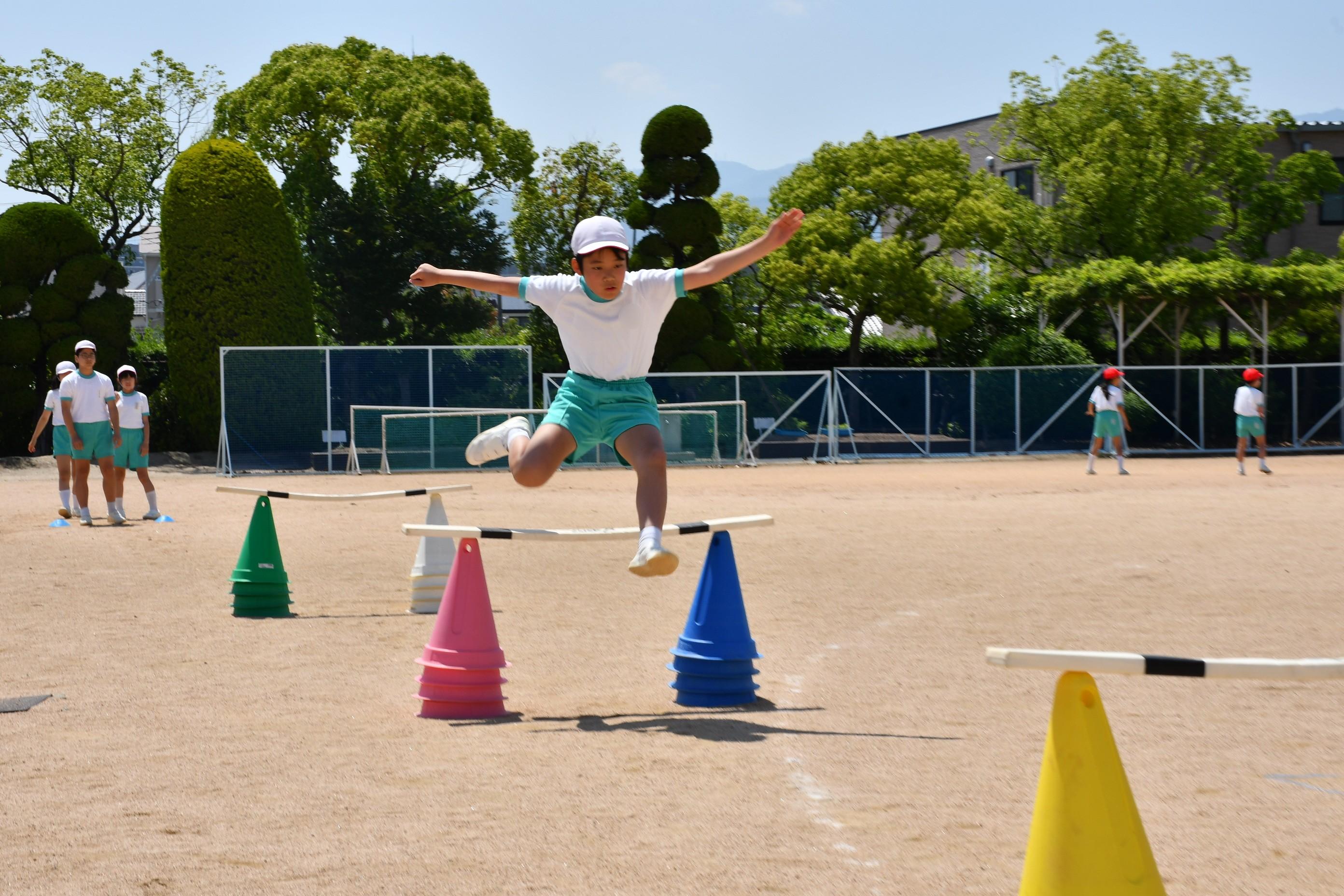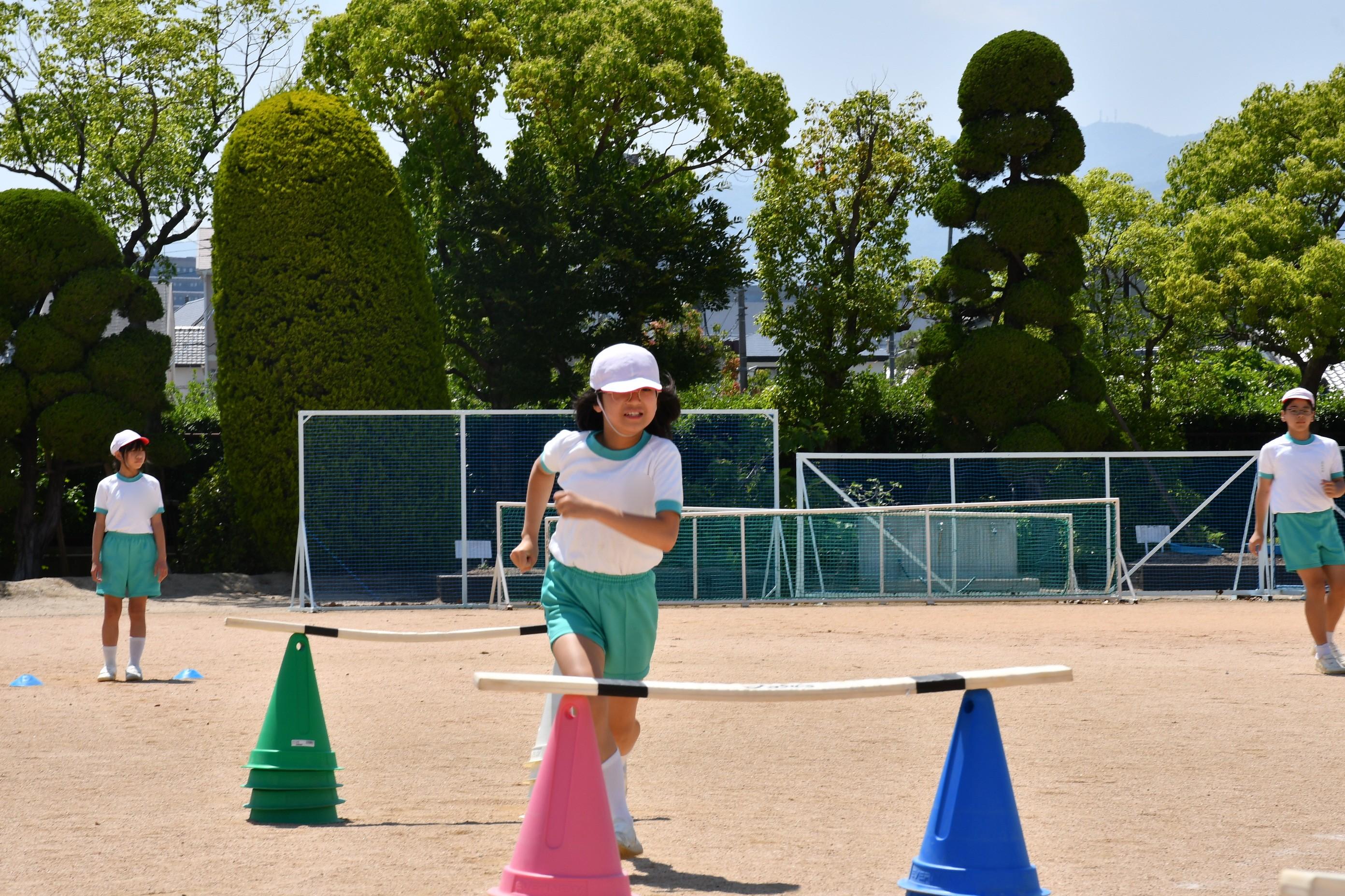 6年生 体育科「ハードル走」 [投稿日:2025年06月05日] 青空の下、6年生は体育科でハードル走をしました。タブレットで交互に撮影し、自らのフォームと級友のフォームを比較。記録を伸ばせるよう話し合いながら練習を行いました。 一覧へ戻る