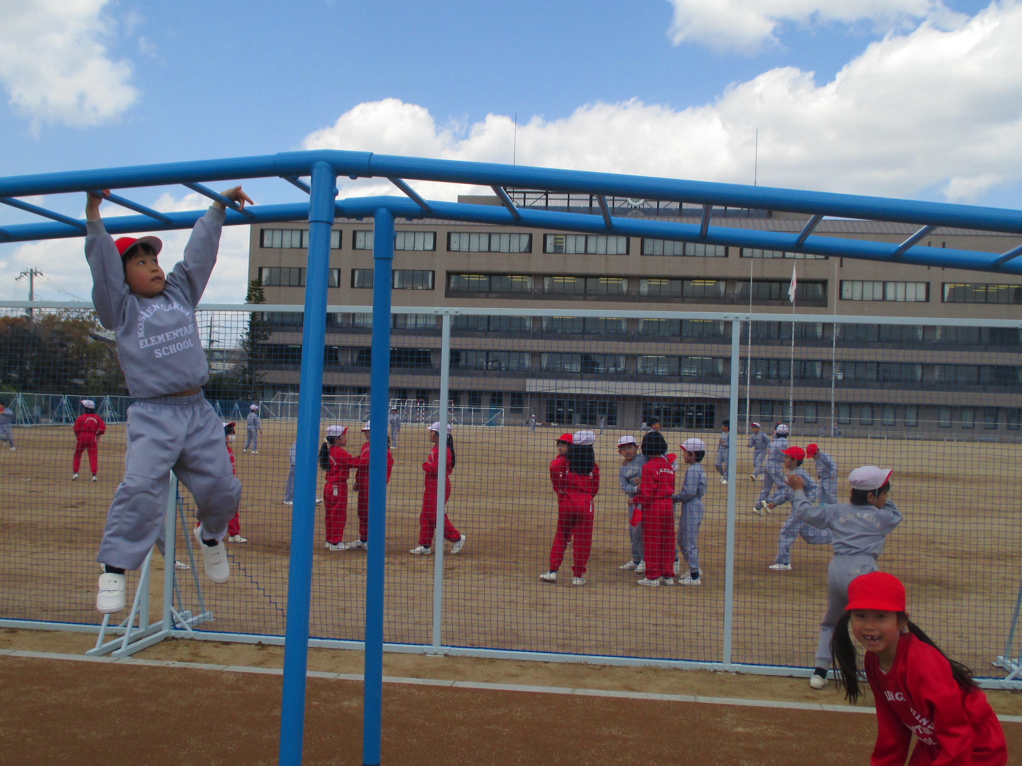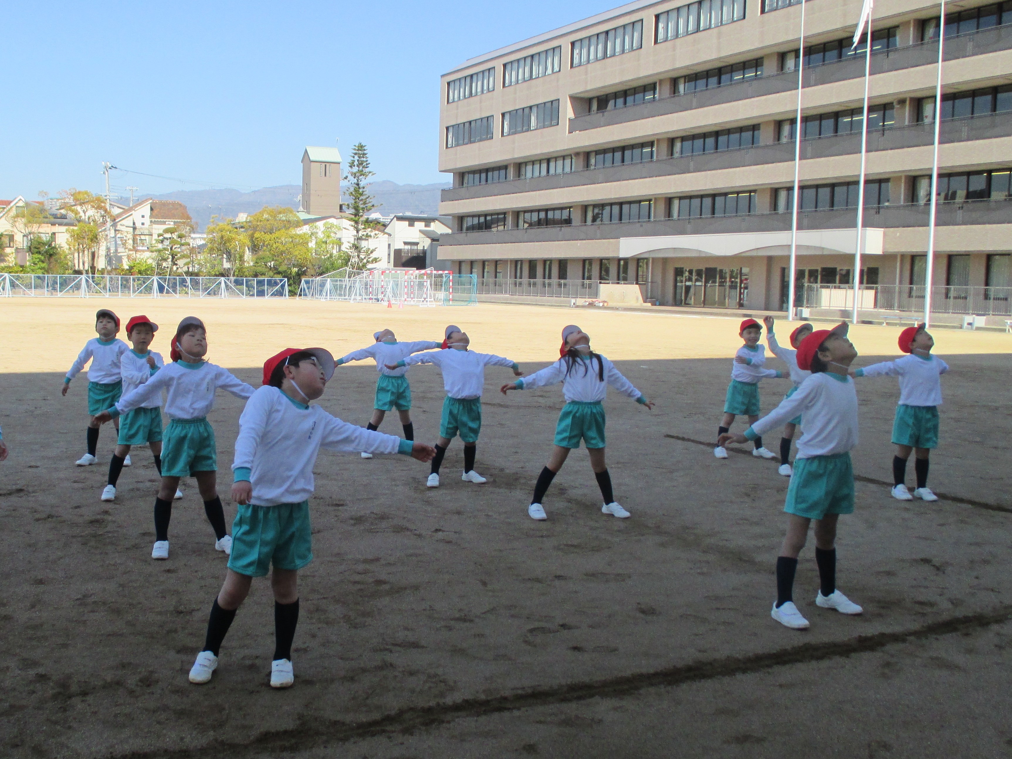 今週から朝のかけ足や外遊びも始まり,今日も元気に運動場を駆け回る1年生の姿が見られました。