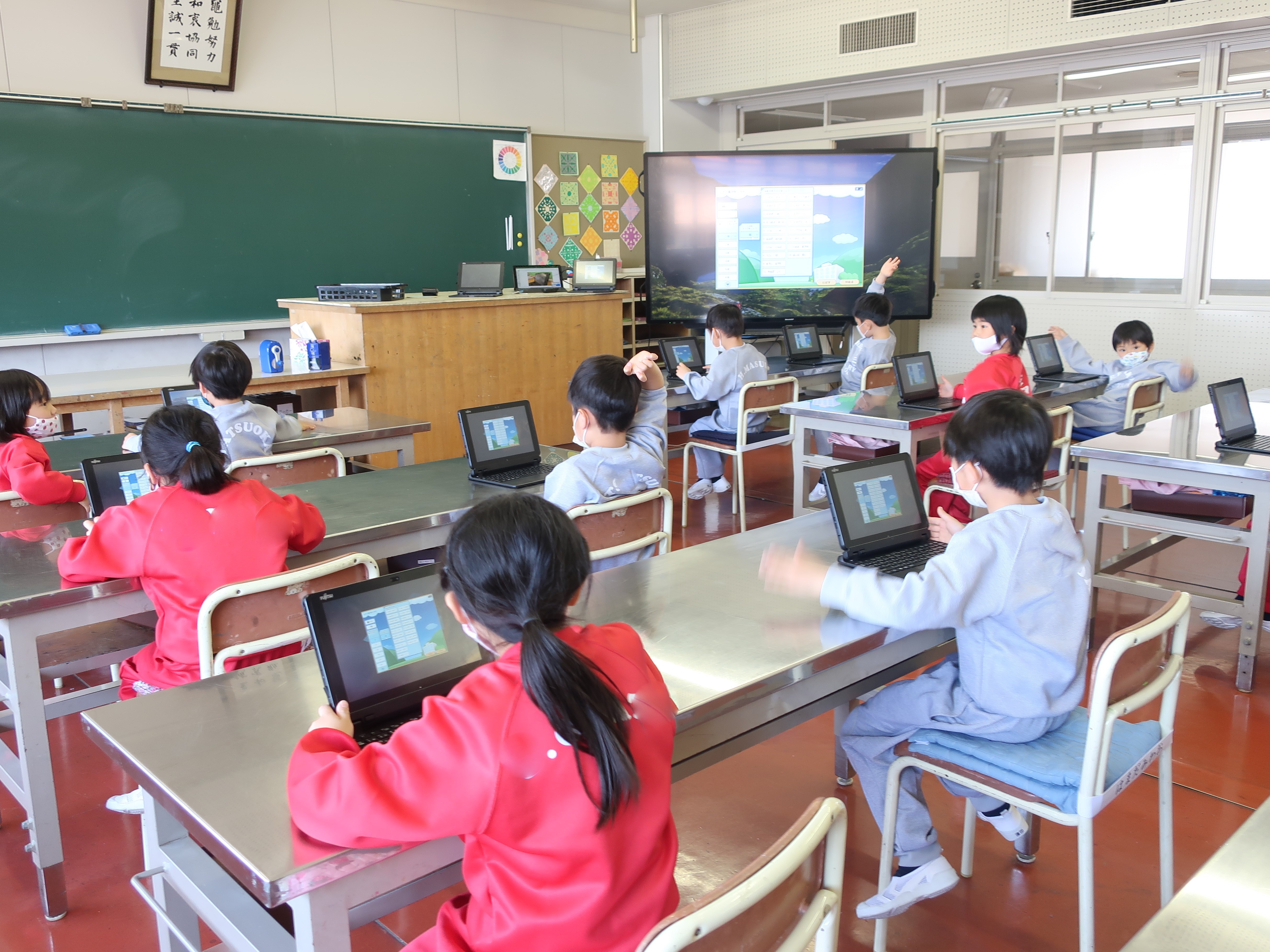 1人一台のタブレットを使い、授業を行いました。