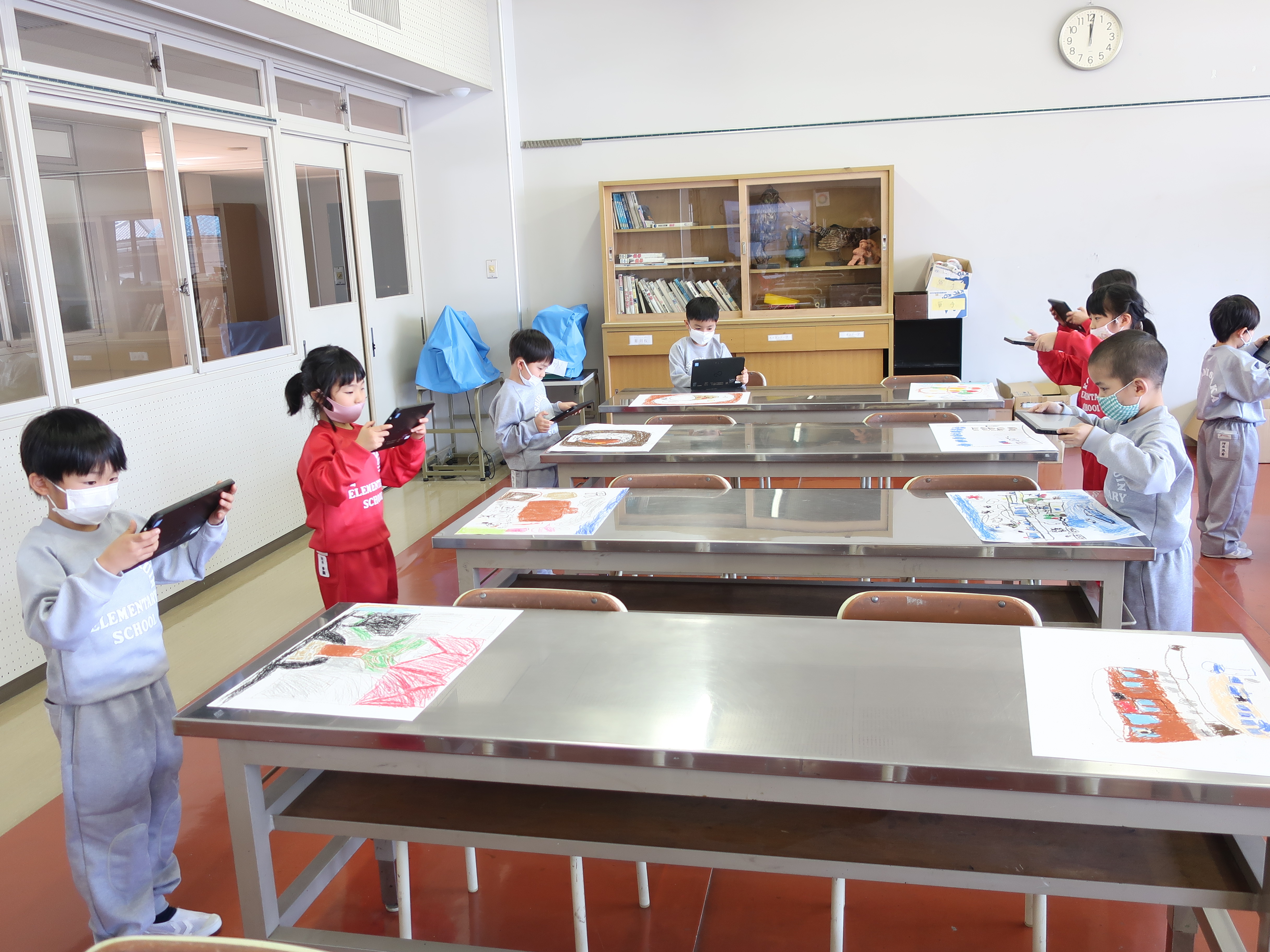 基本操作を学んだ後、図工の授業で描いた絵をタブレットで撮りました。