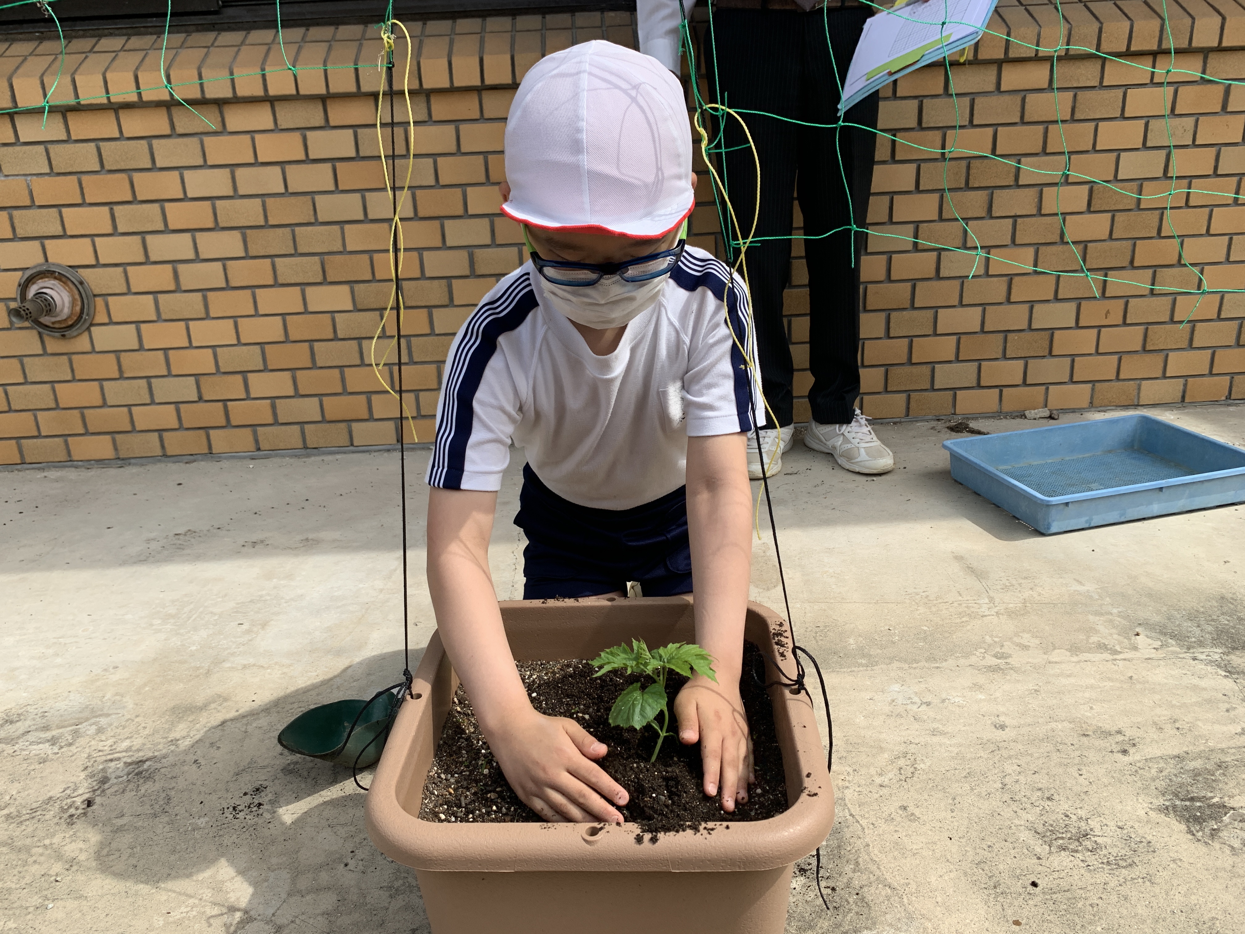 大きなポットでしたが、2年生の時に植え付けを経験していたので上手に植え付けることができました。