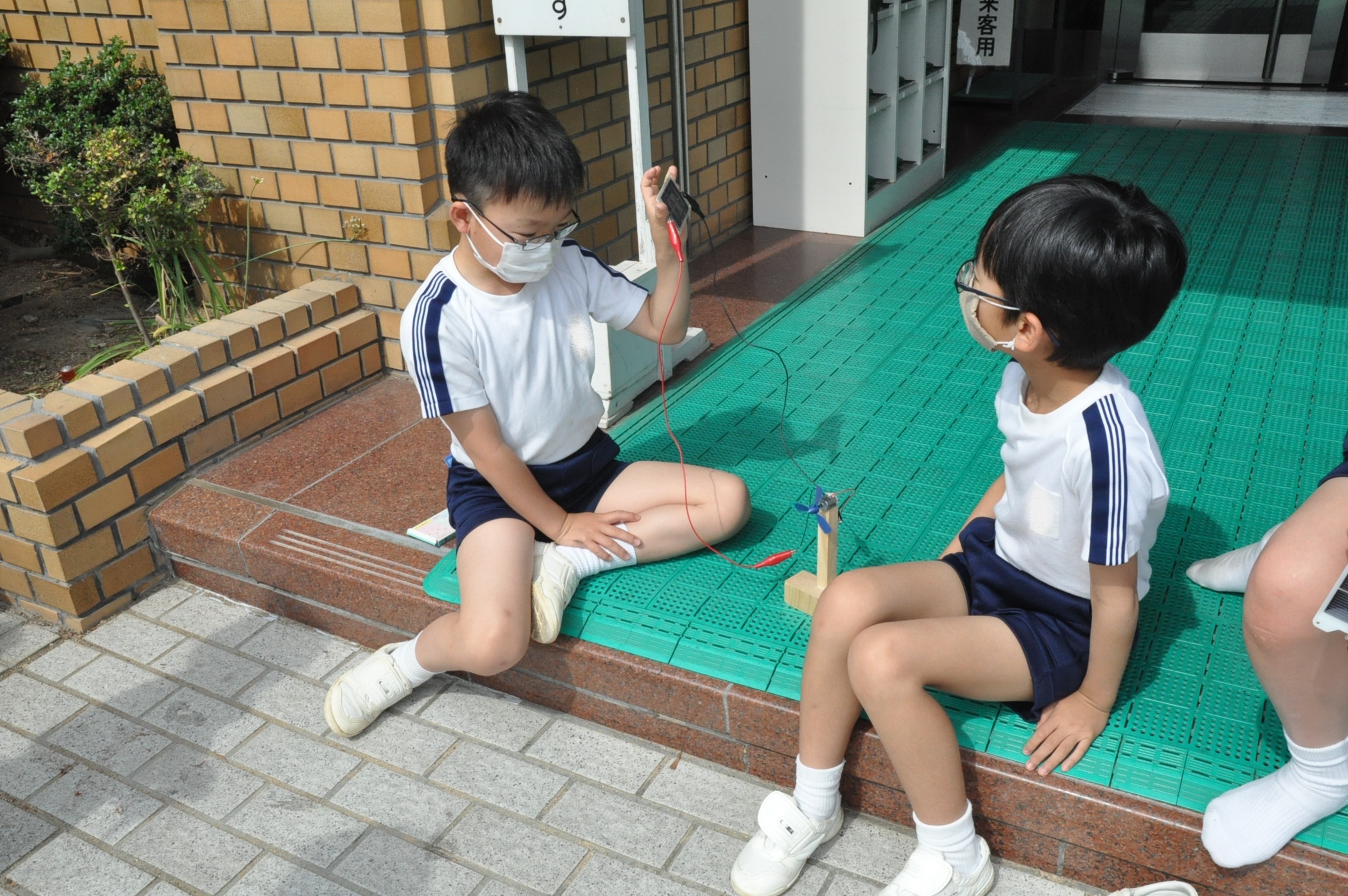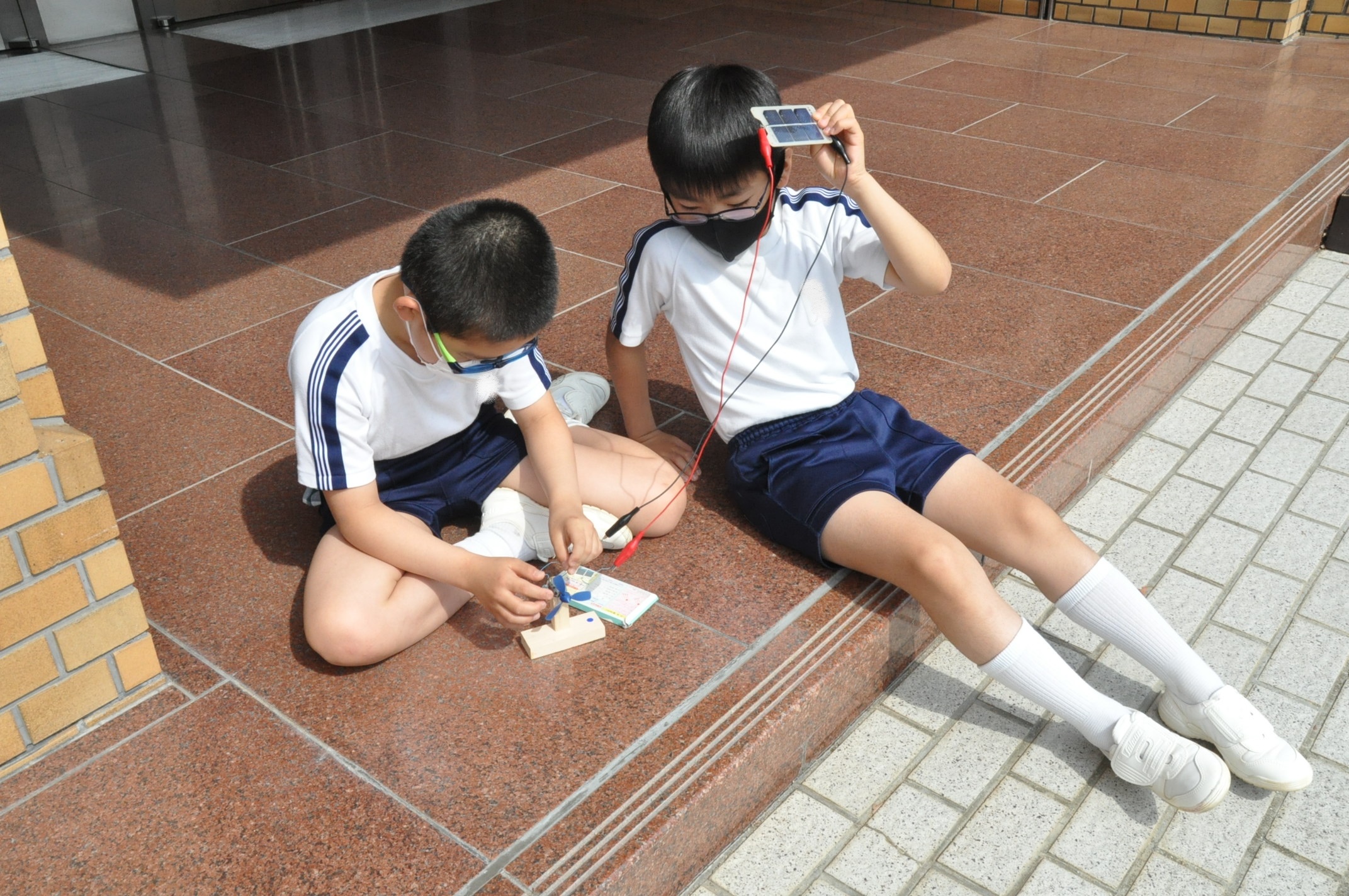 光電池の活動では、パネルを太陽に向ける角度で回転する速さが変わることや影を作ると動かなくなるなど様々なことに気づくことができました。