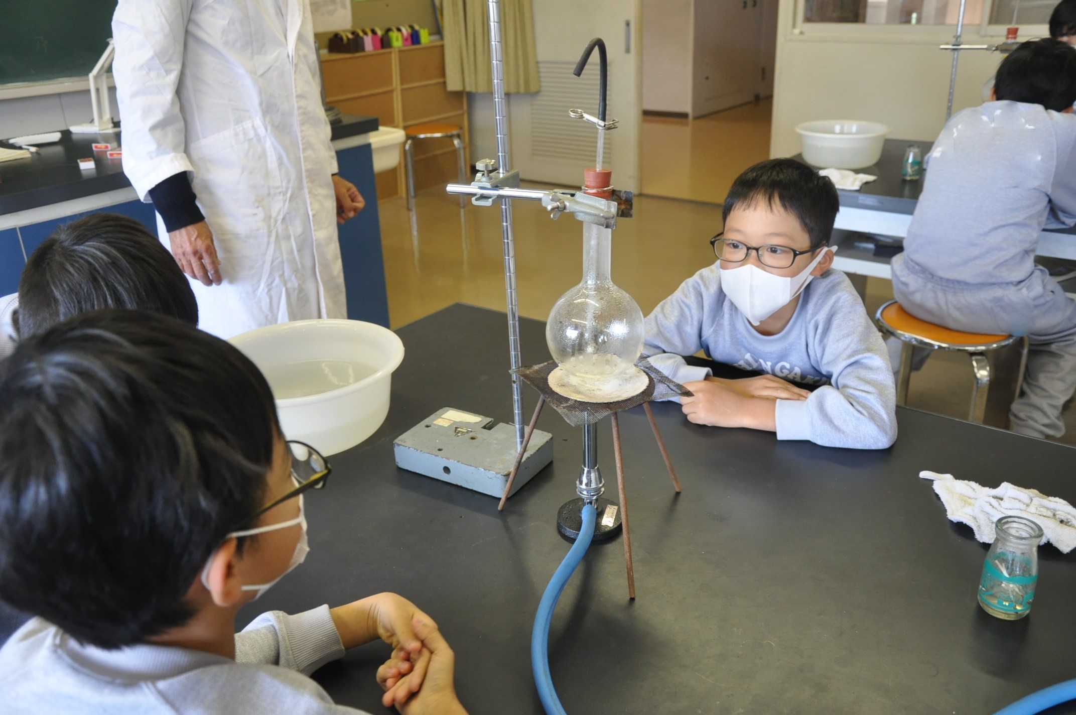 今までにマッチで火をつける練習もしてきたので、フラスコの中を真空状態にする作業も手際よく行えました。
