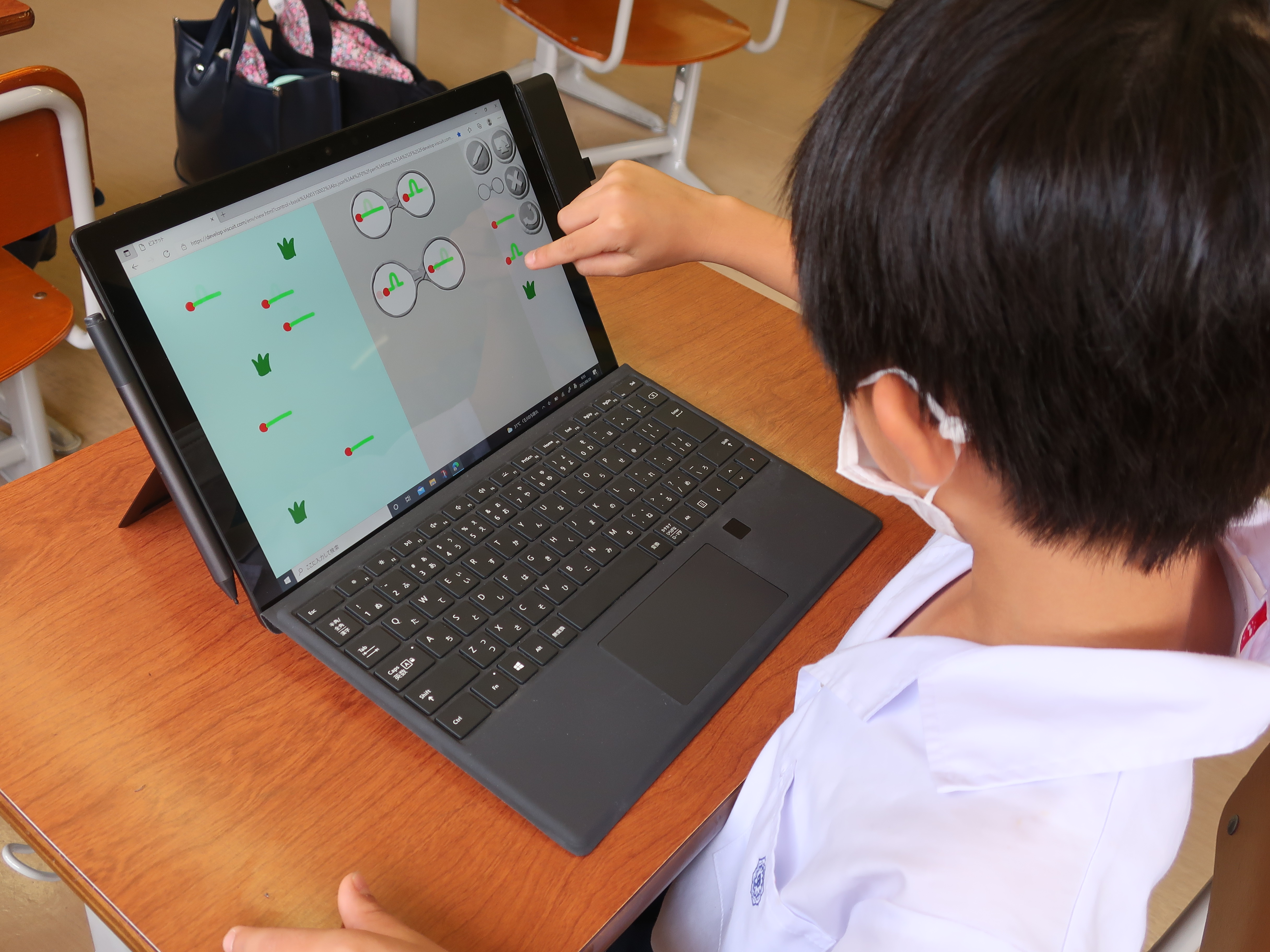 1年生では、タブレットやパソコンを使用してプログラミングの学習を行いました。