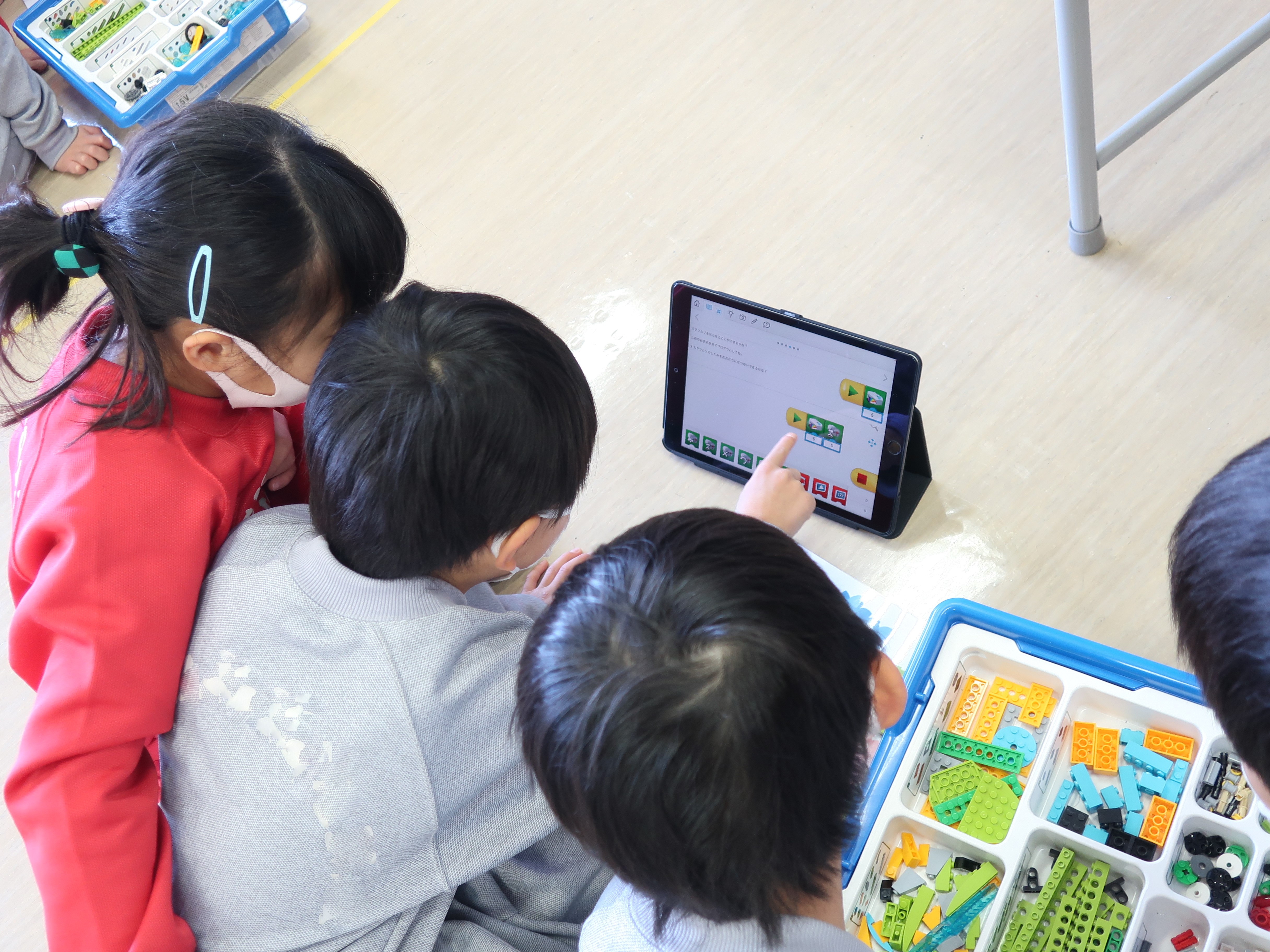 1年生では、プログラミングの学習をレゴブロックを使用して行いました。