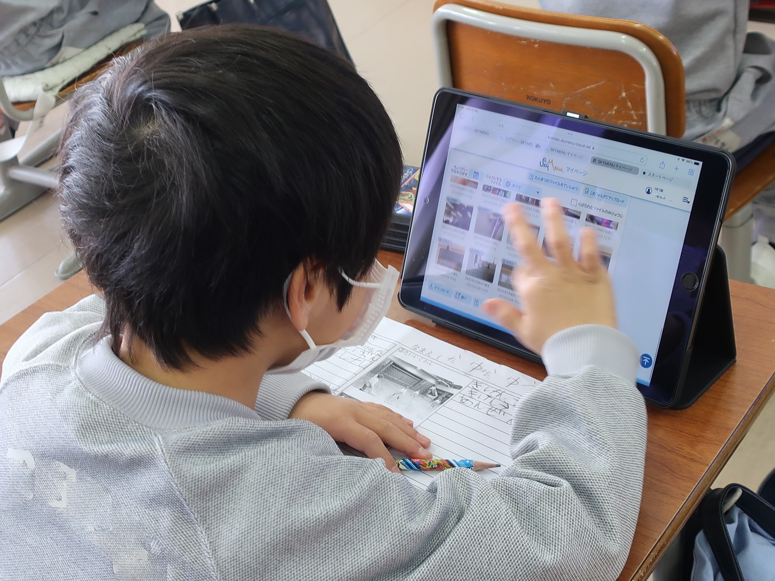 撮影した写真を見ながら紙にまとめる