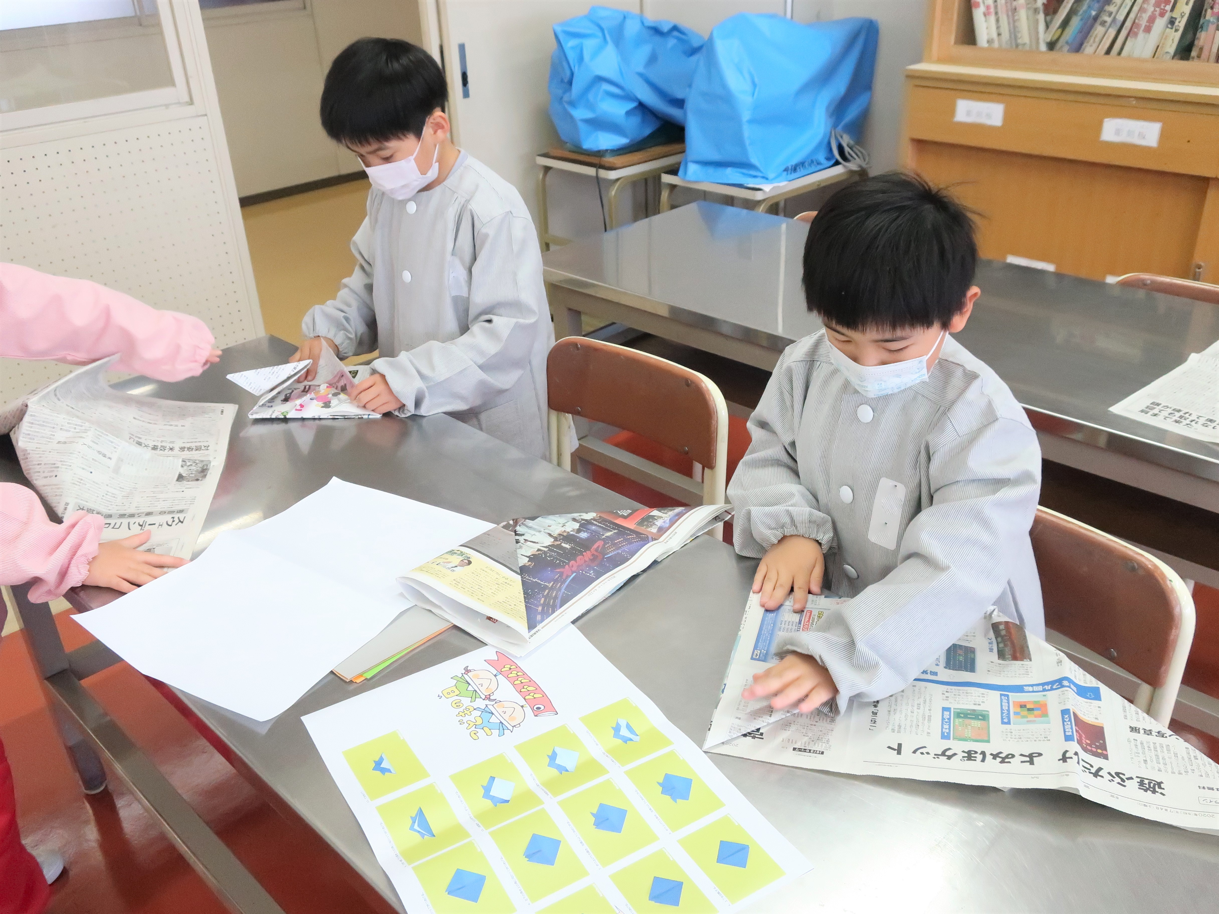 図工科の時間には、こいのぼりとかぶとを作りました。