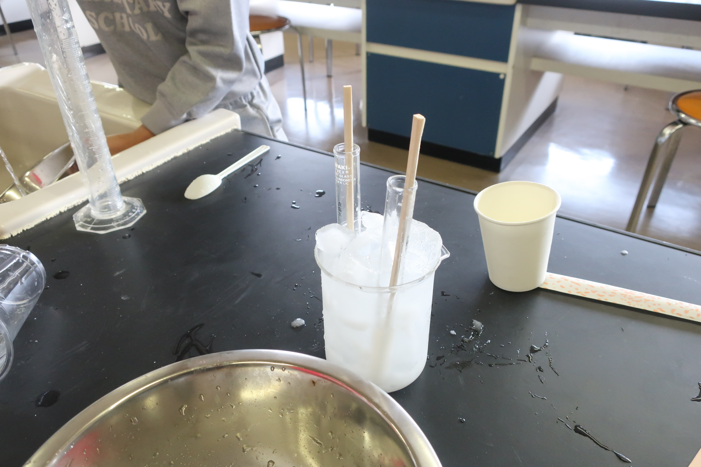 4年生では、理科「水を冷やしたときの変化」の学習でアイス作りをしました。