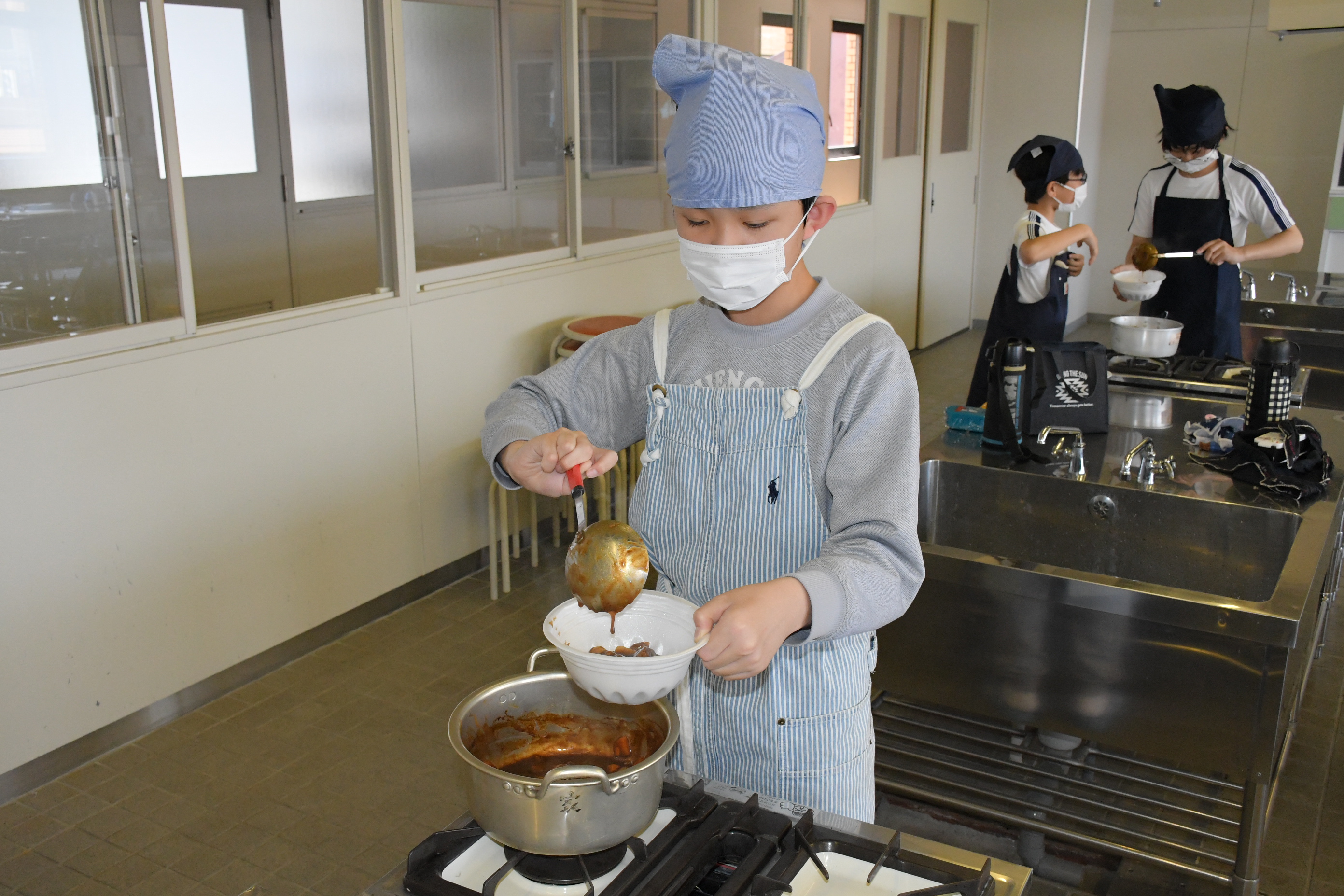 6年生は林間学校に向けての練習を兼ねて、ビーフシチューを作りました。慣れない手つきではありましたが愛情をこめて作りました。完成したビーフシチューを食べて、子どもたちは満足そうな表情を見せました。