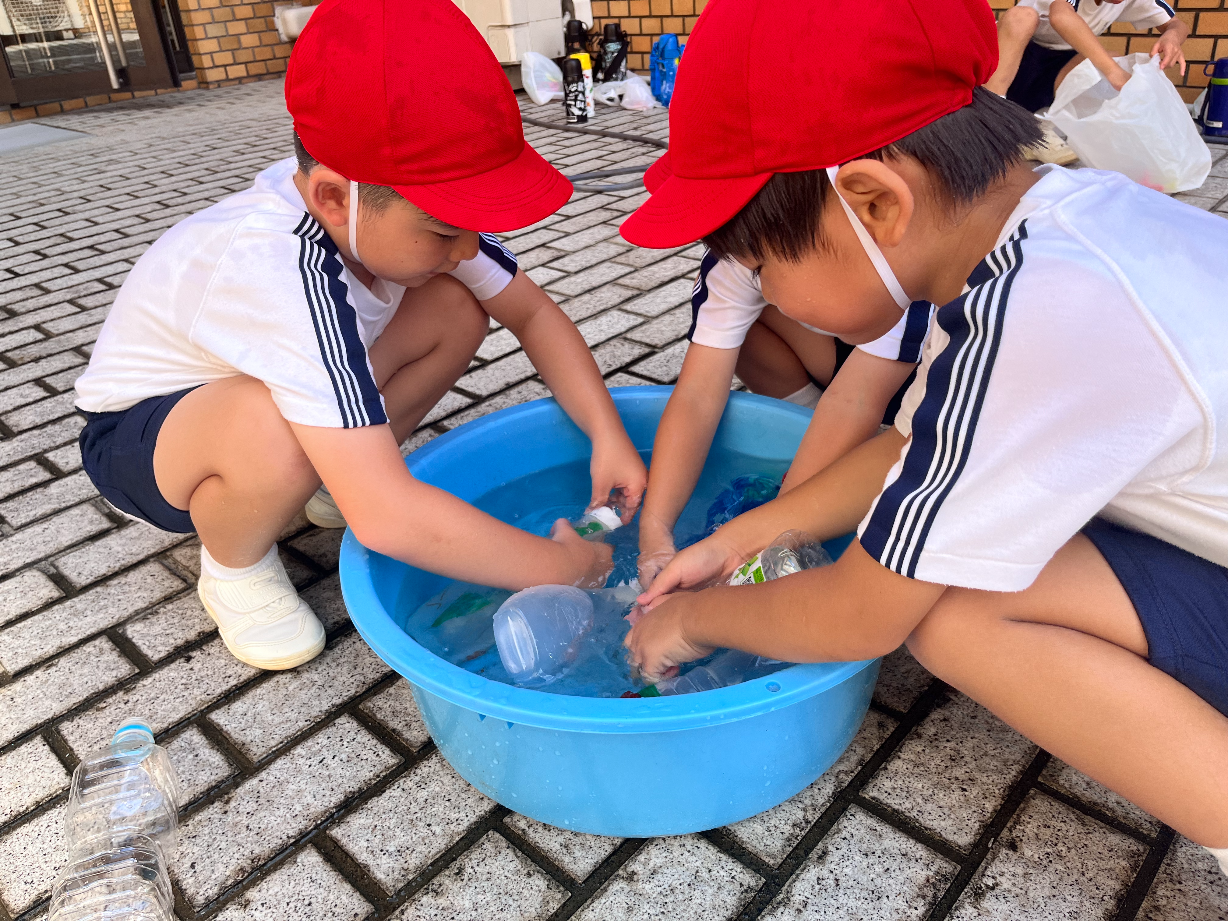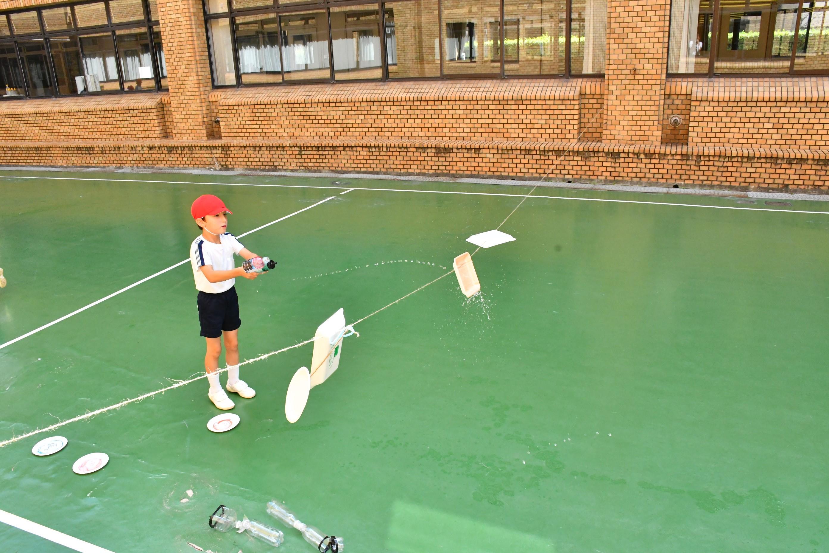 1年生は、生活科「水あそび」を行いました。1学期に企画していたものが雨で延期になってしまいましたが、その分たくさん準備をすることができました。