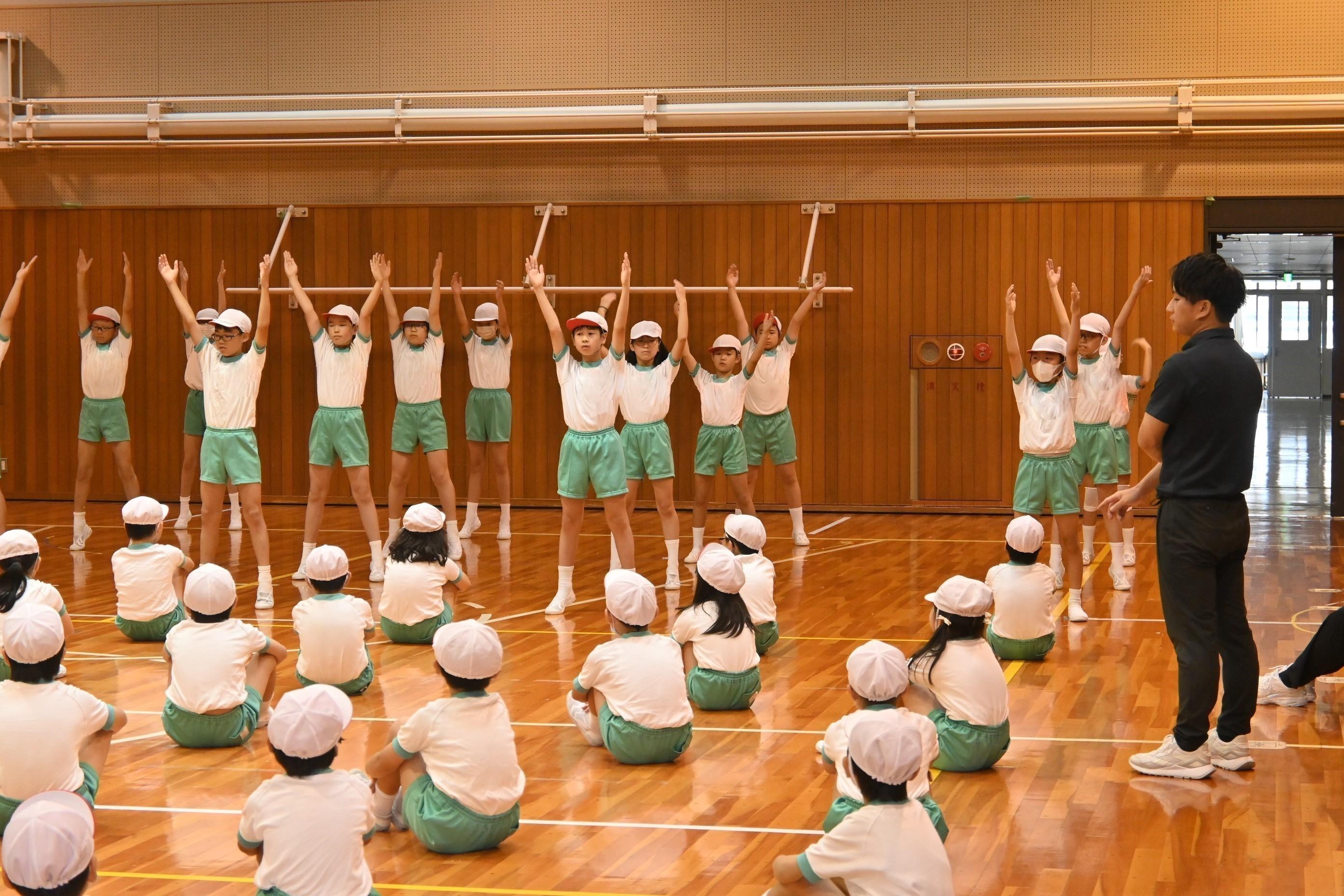 運動会練習「ラジオ体操を下級生に披露」