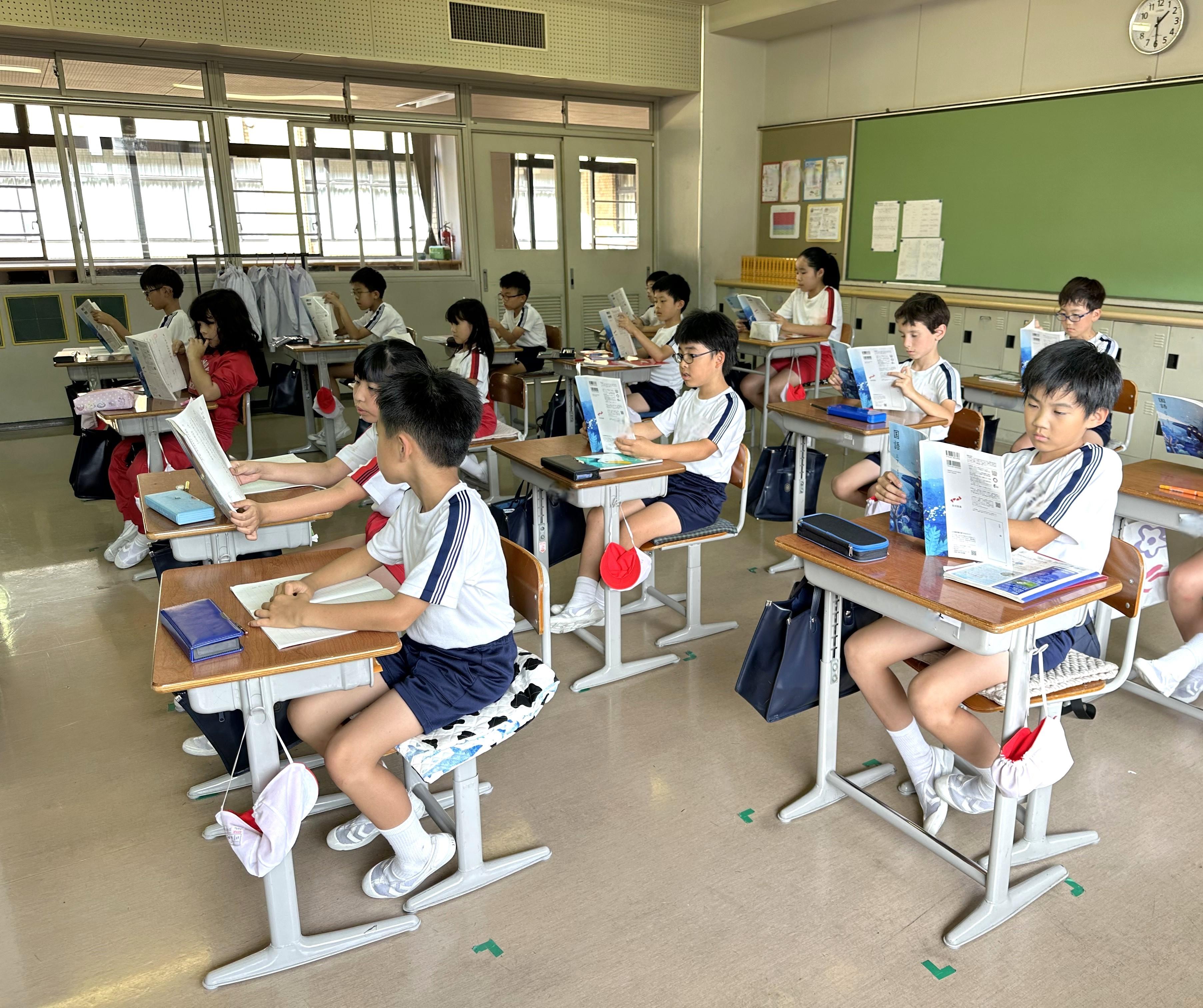 単元「ちいちゃんのかげおくり」の授業が始まりました。戦争の話であることからシリアスな雰囲気で音読をしました。音読後、感想を書いているときに、「亡くなってしまうちいちゃんは幸か不幸か」という話題が上がりました。単元の終了が近づいたときに再度皆で考えます。授業の最後に広場でかげおくりをして遊びました。