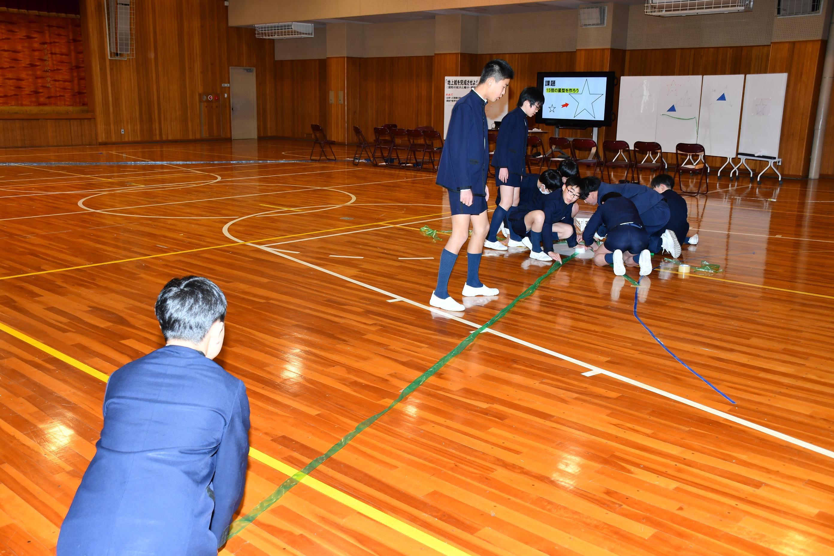 定規や分度器は使わず、ひもだけを使って、元の絵の15倍の大きさの星型を2チームで作成しました。