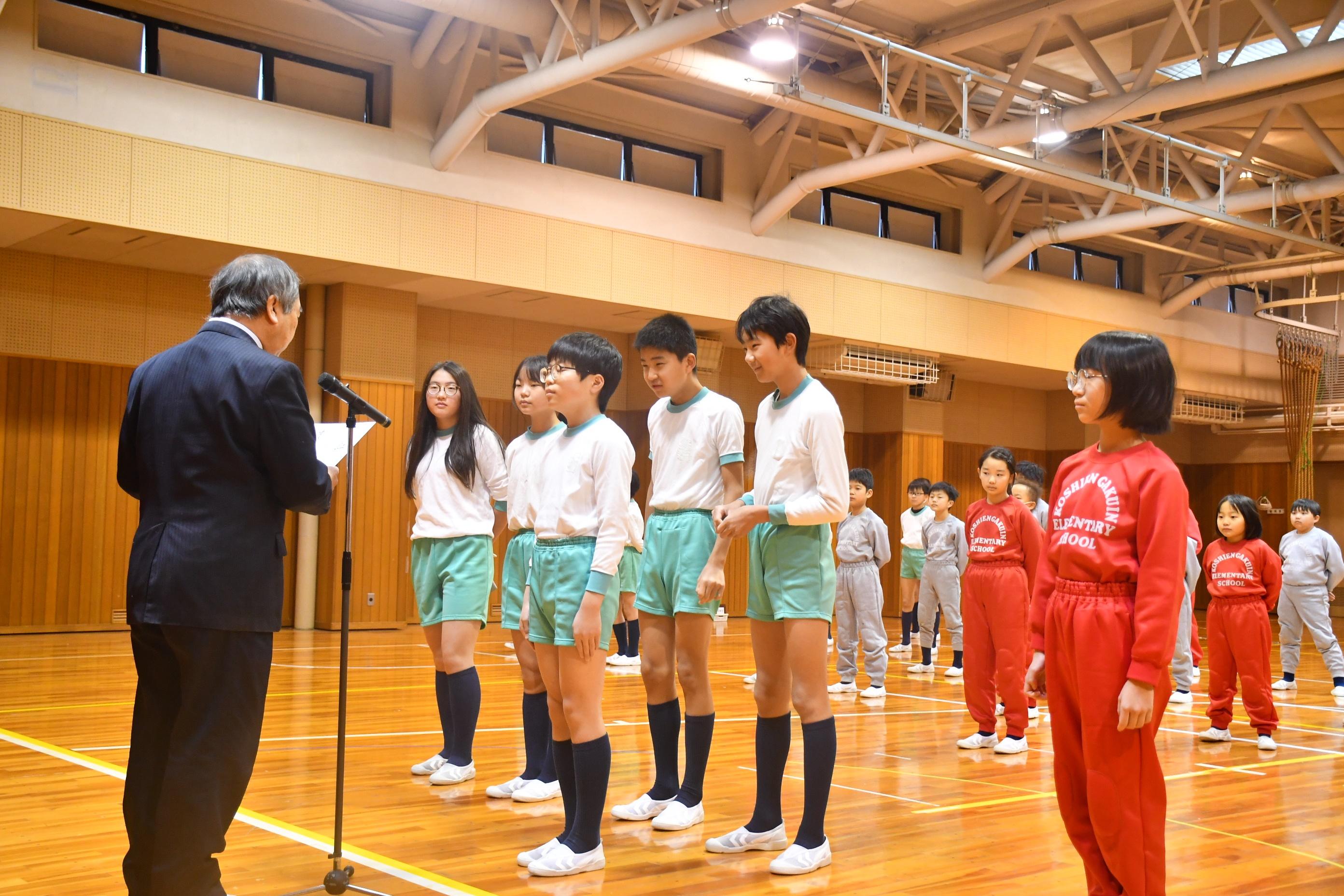 令和7年2月17日(月)、児童朝礼で表彰式を行いました。習字クラブで優待生に認定された児童に認定証を授与しました。また、私学美術展に出展した児童の表彰や五色百人一首、ピアノで優秀な成績を残した児童の表彰も行いました。