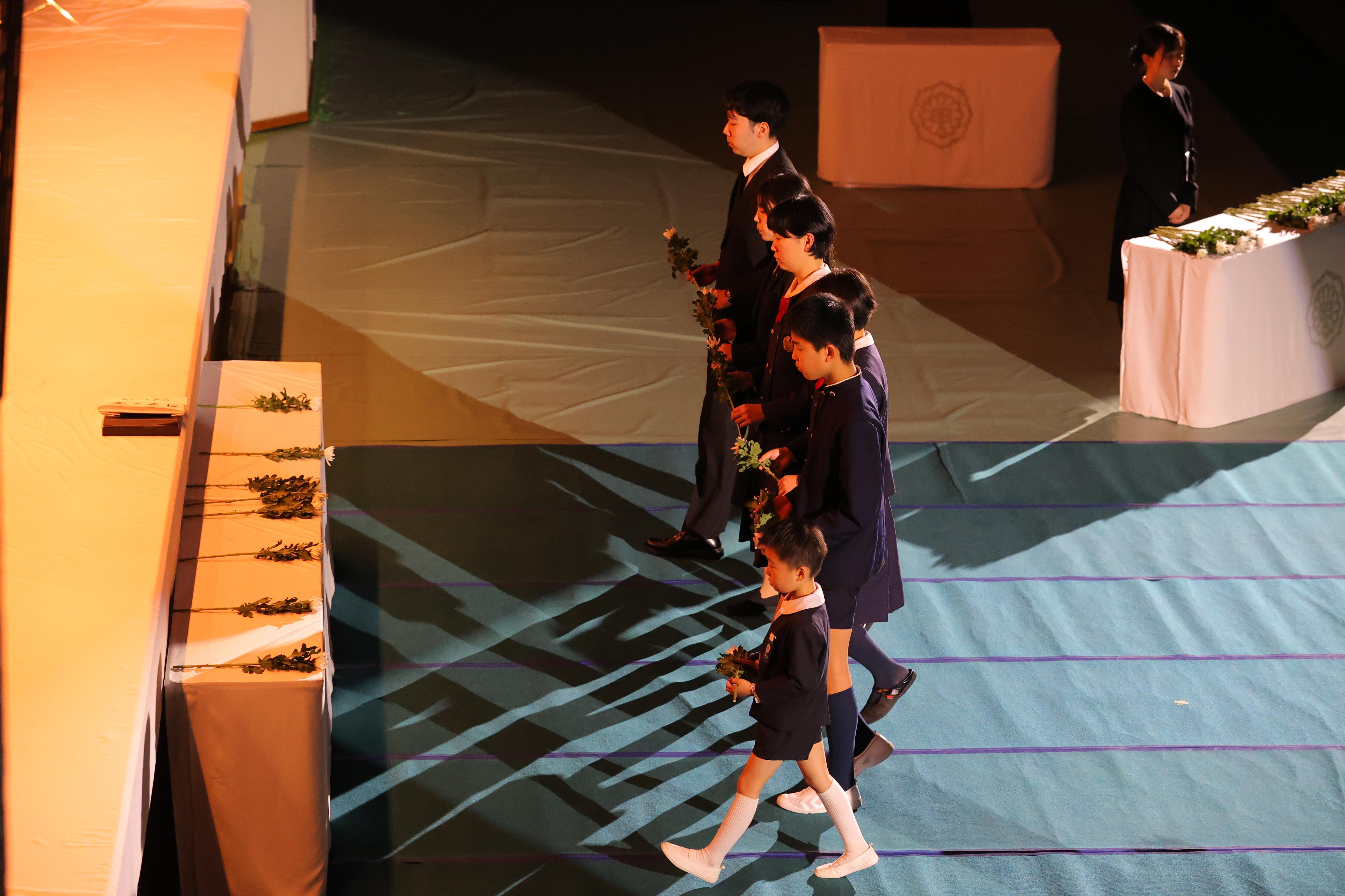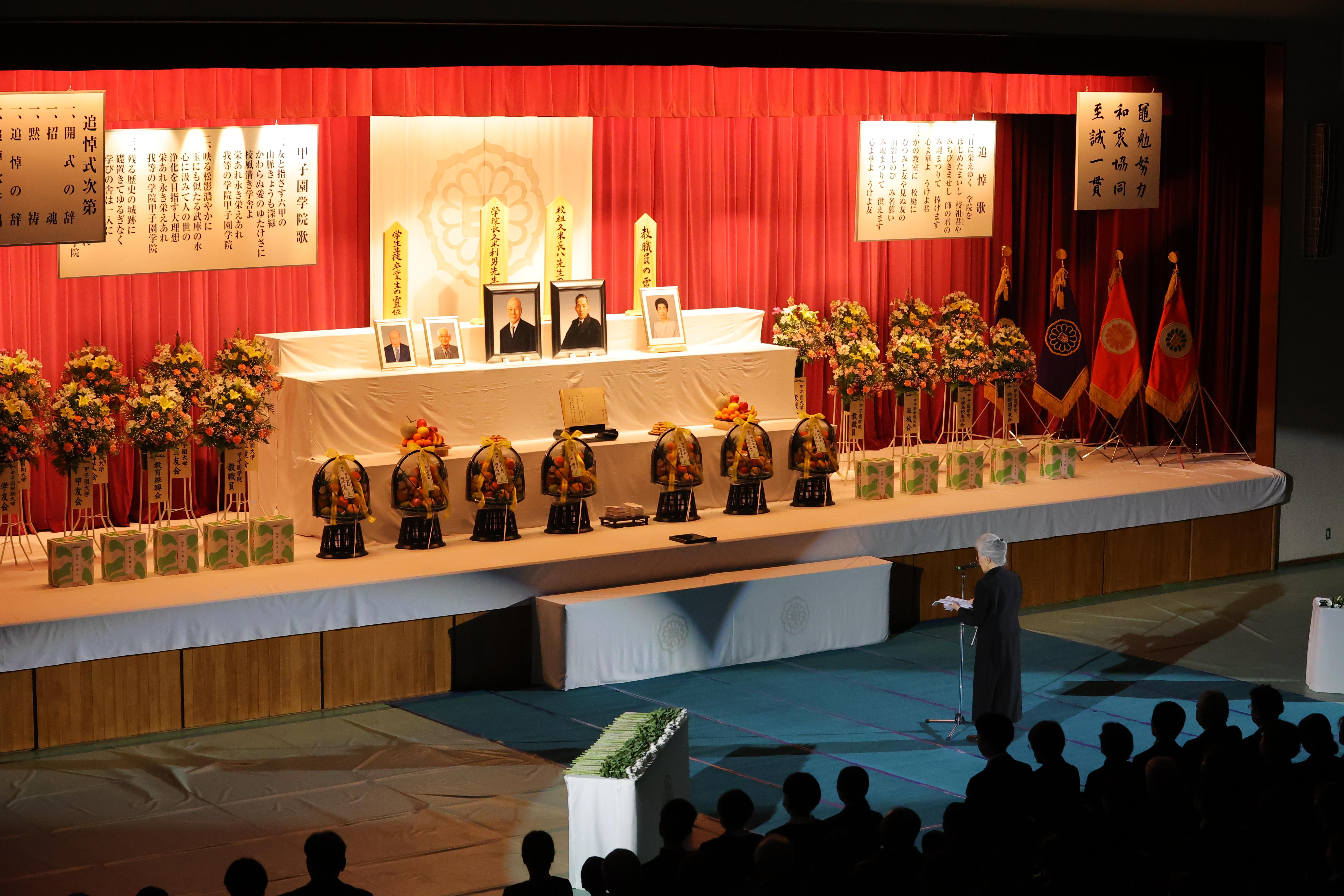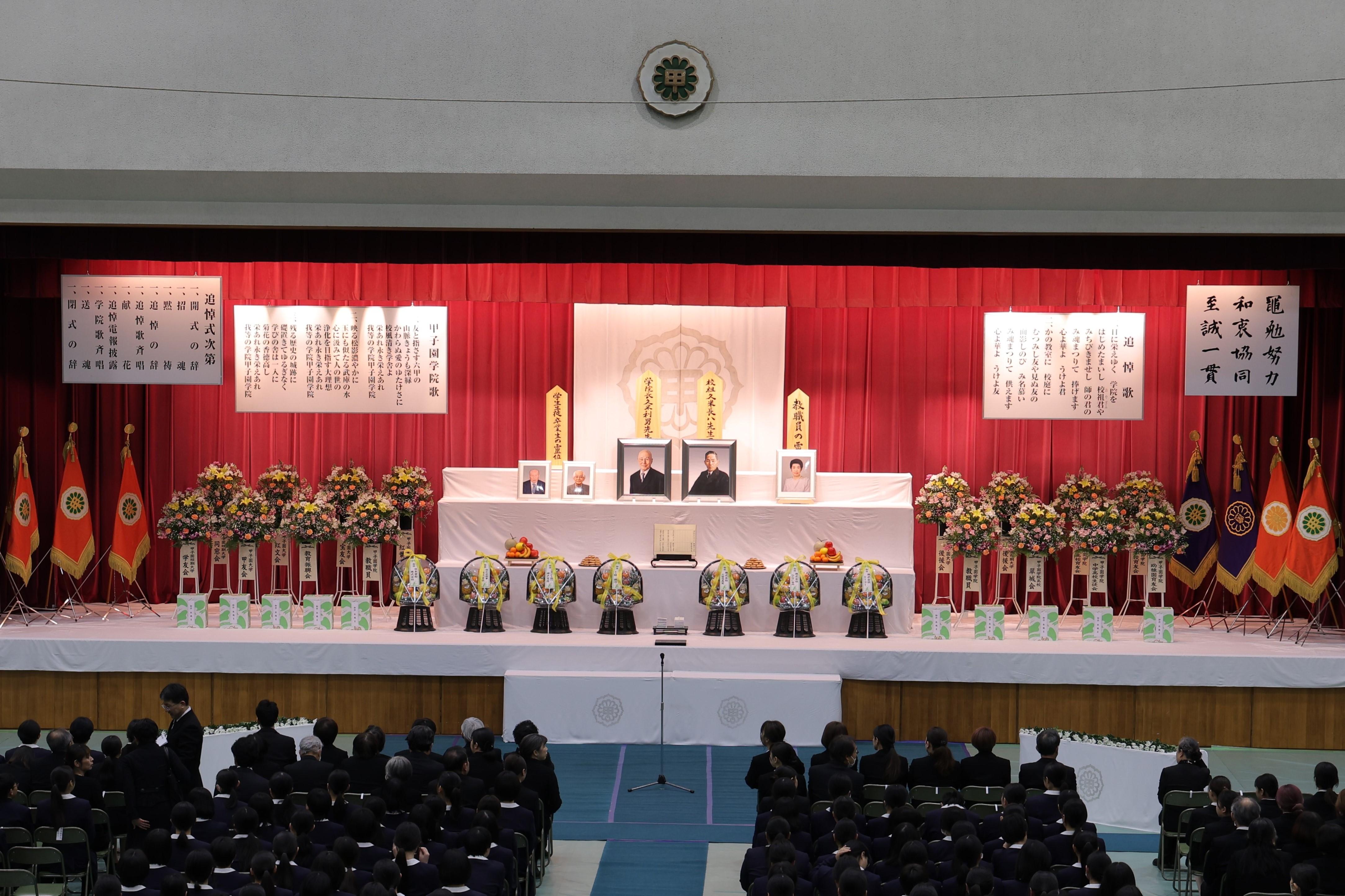 久米知子学院長先生の追悼の言葉の後、各学校園の代表による献花を行い、またご来賓や一般参列の皆様からの献花も行いました。