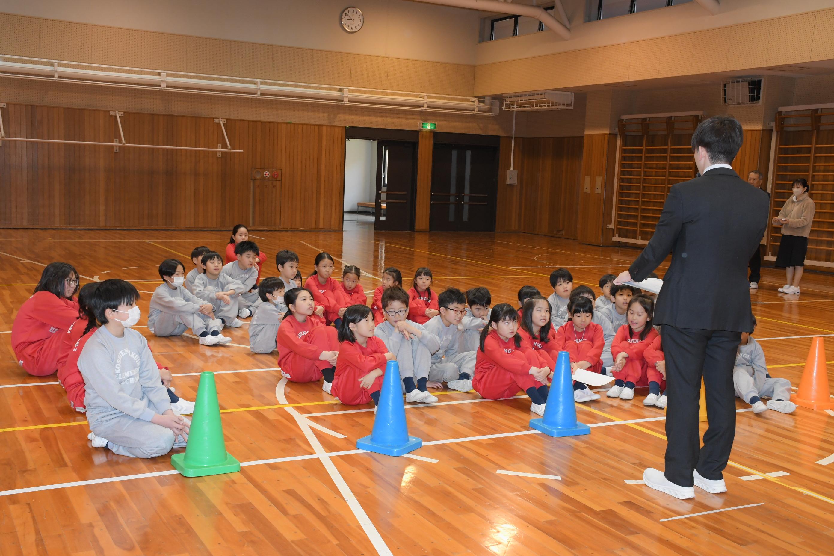 児童朝礼の後、下校指導を実施しました。徒歩や各公共交通機関別に分かれて、登下校中のマナーについて話を聞きました。
