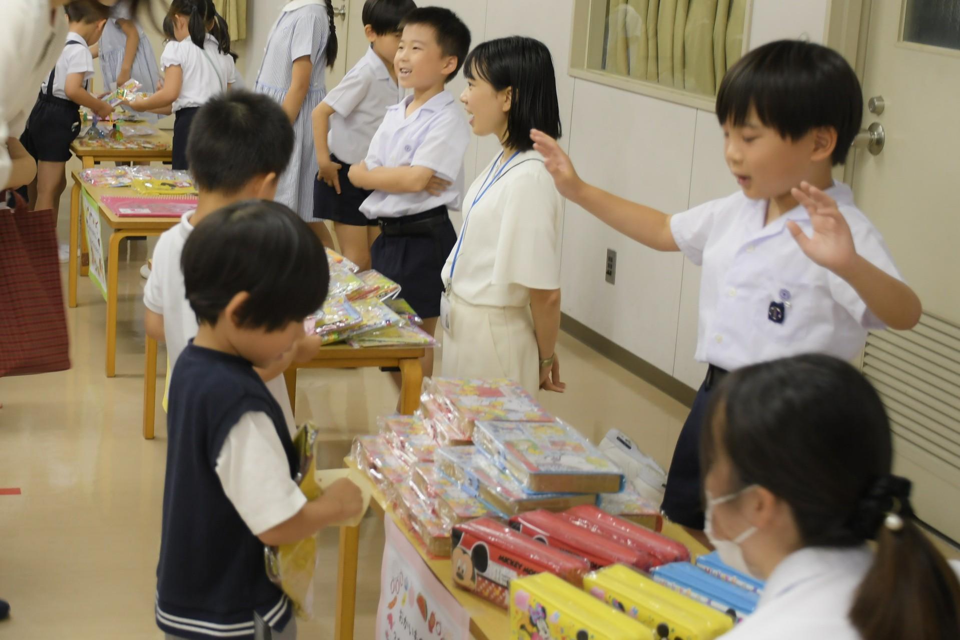 体験学習後には、校舎見学やプレテストの問題解説を実施したほか、子どもたちにはお買い物ゲームを楽しんでもらい、自分好みの景品を手にしました。