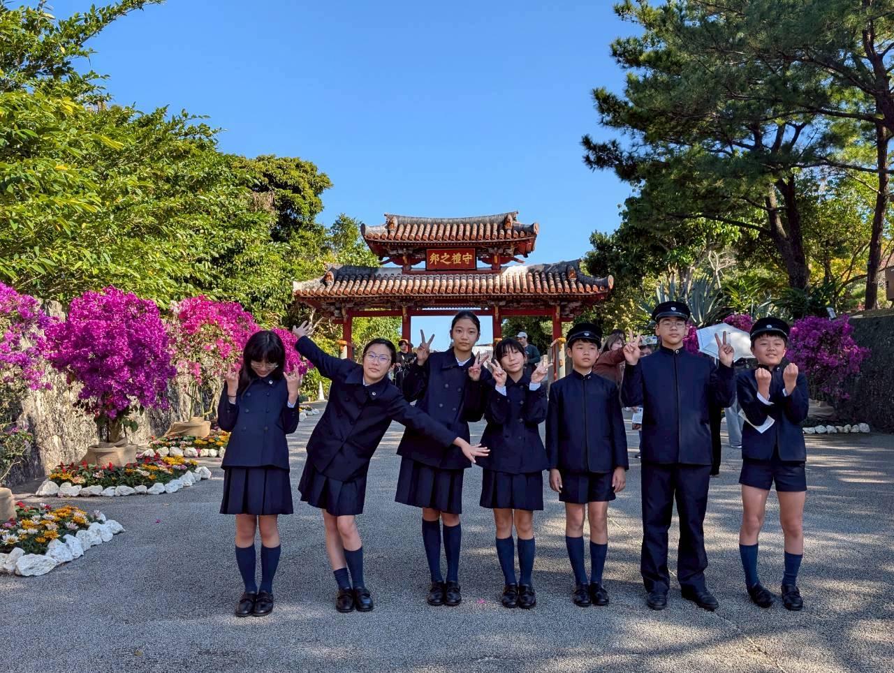 最終日は、朝からおきなわワールドへ。玉泉洞では大自然の神秘を感じ、メインステージでは本場のエイサーを鑑賞しました。三線の早弾きに合わせ、沖縄の伝統的な踊りである「カチャーシー」をして盛り上がりました。その後、バスに揺られ首里城公園へ行きました。守礼門をくぐり、公園内にある歴史的建造物や史跡を見て周りました。首里城の復元に向けて行われている工事を見学し、沖縄の人々の熱意やエネルギーを感じることができました。6年生はこの修学旅行4日間を全力で楽しみ、真剣に学び、かけがえのない思い出を作ることができました。