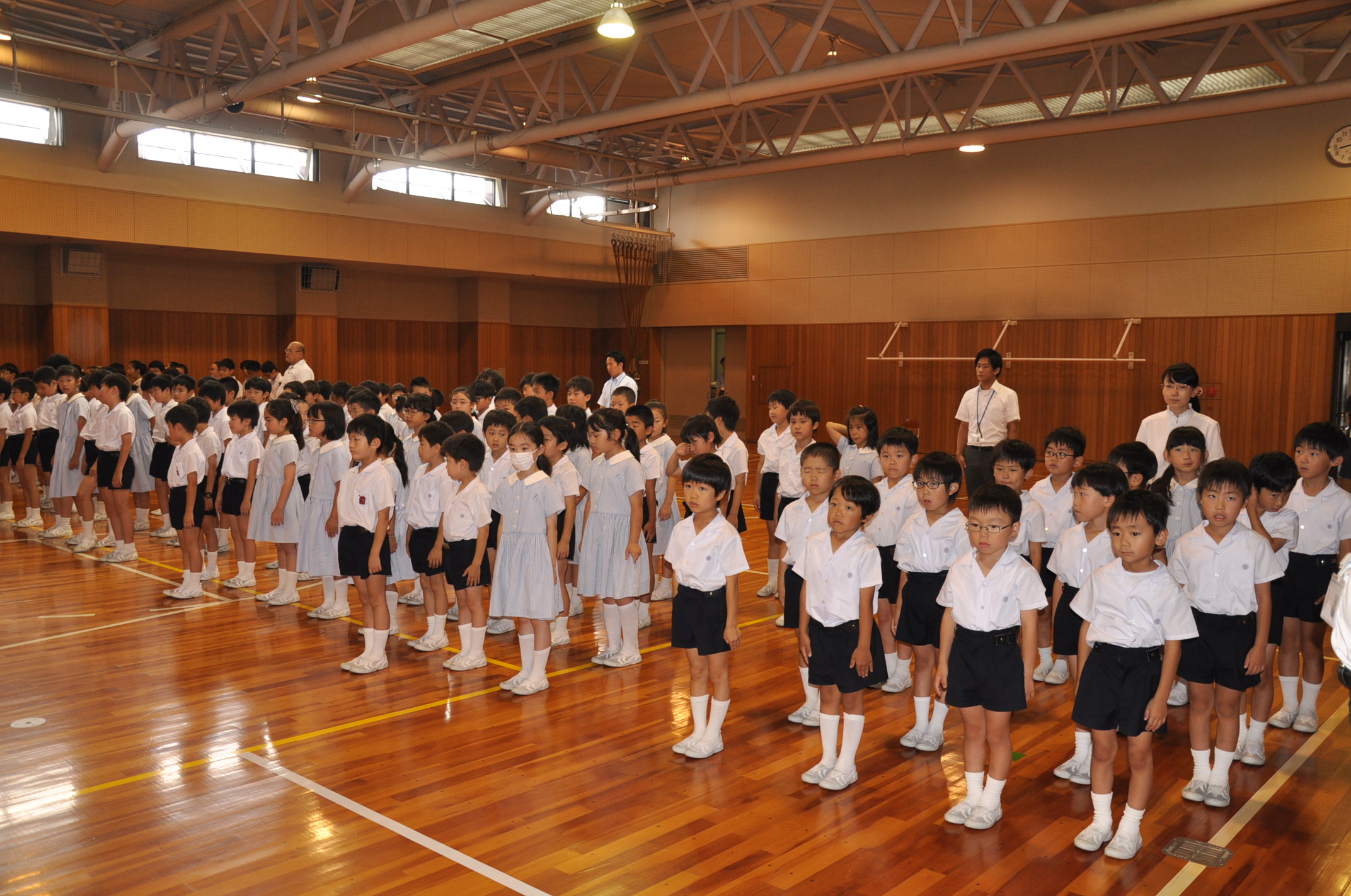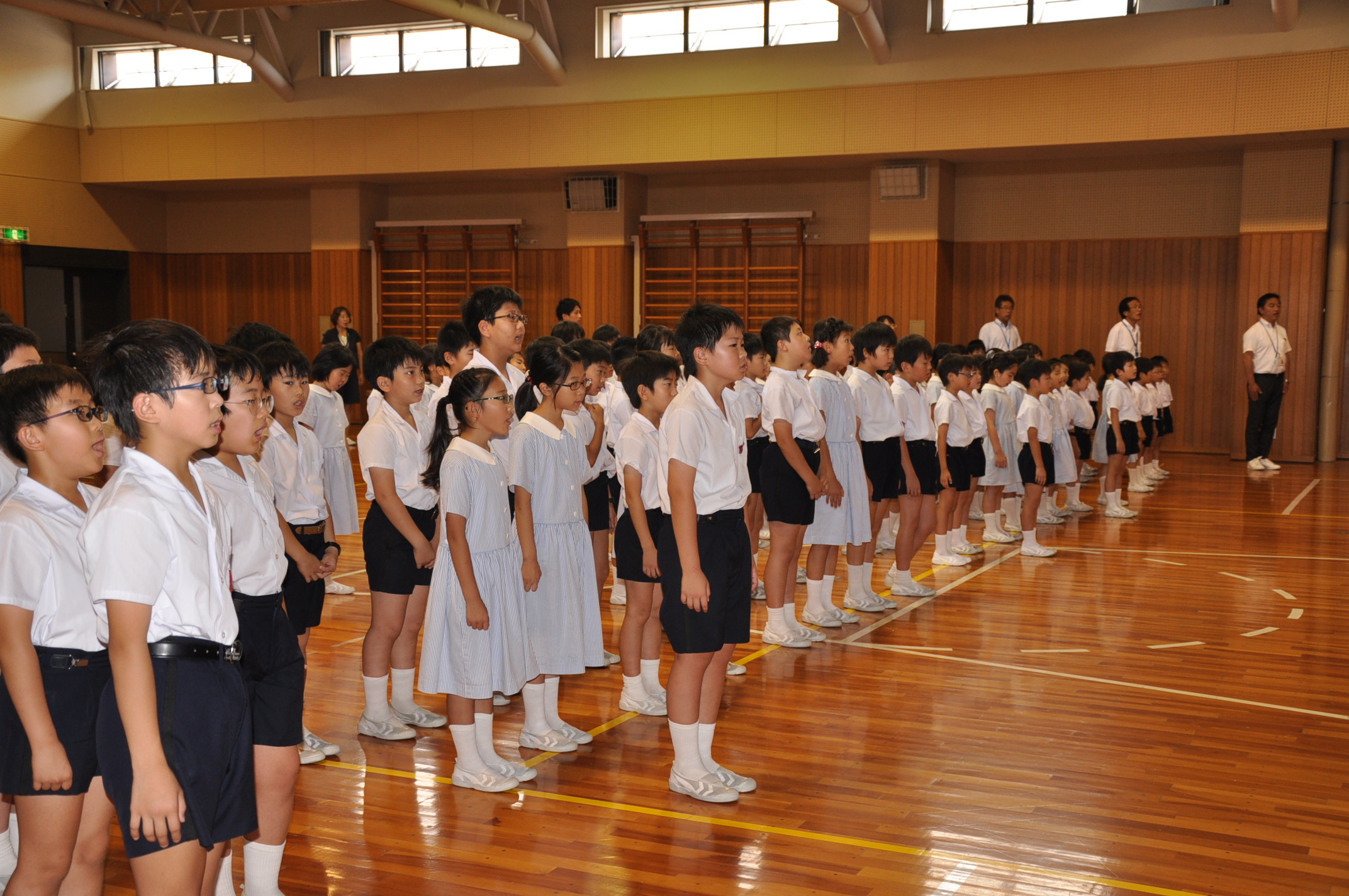 第1学期 終業式[投稿日:2018年07月20日] 平成30年7月20日(金),1学期の終業式を行いました。 終業式が始まります。 終業式が始まります。 校長先生のお話です。 健康に気を付け,学習に励み 有意義な夏休みを過ごしましょう。 最後に,全員で校歌を歌いました。 一覧へ戻る