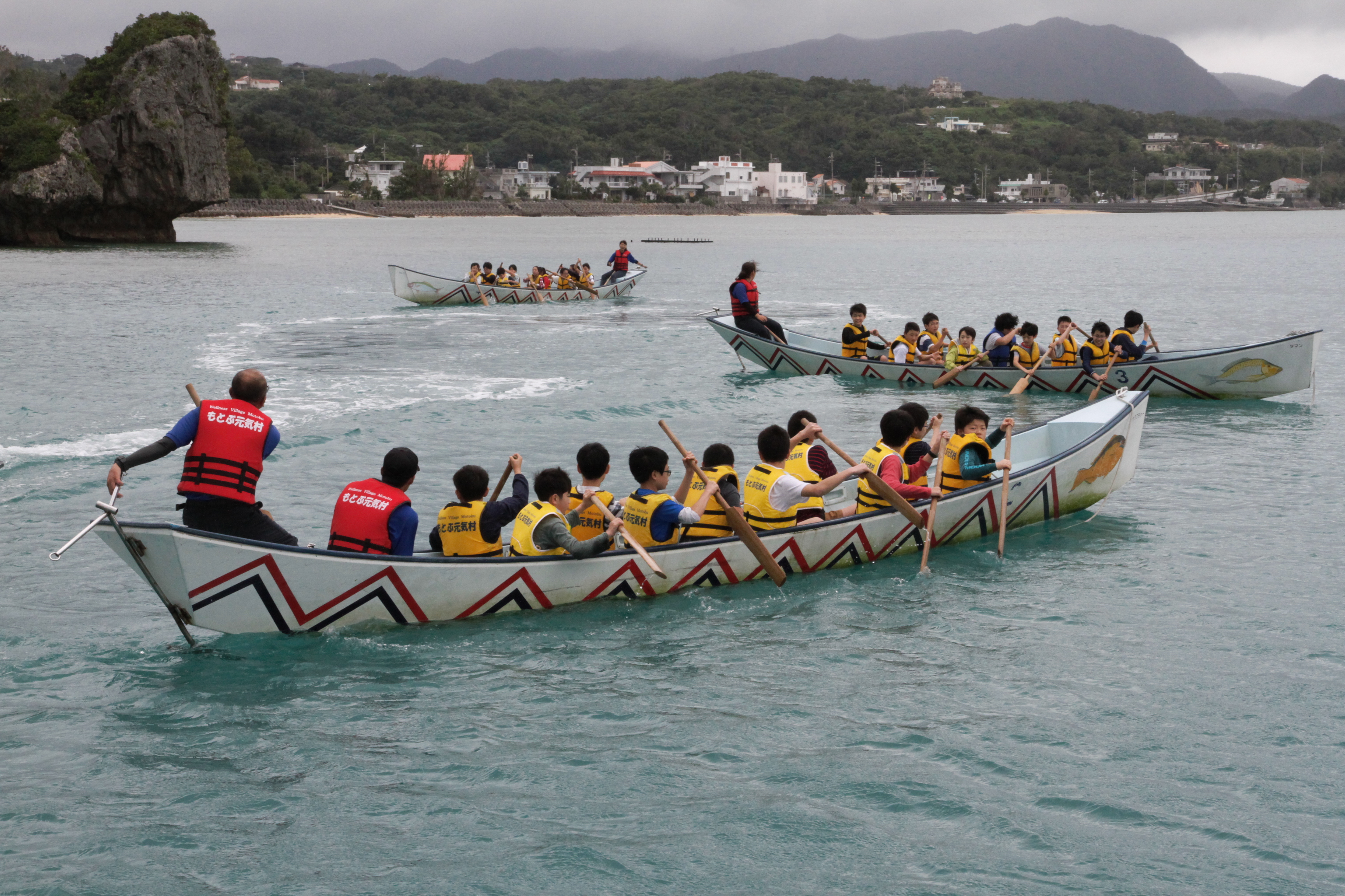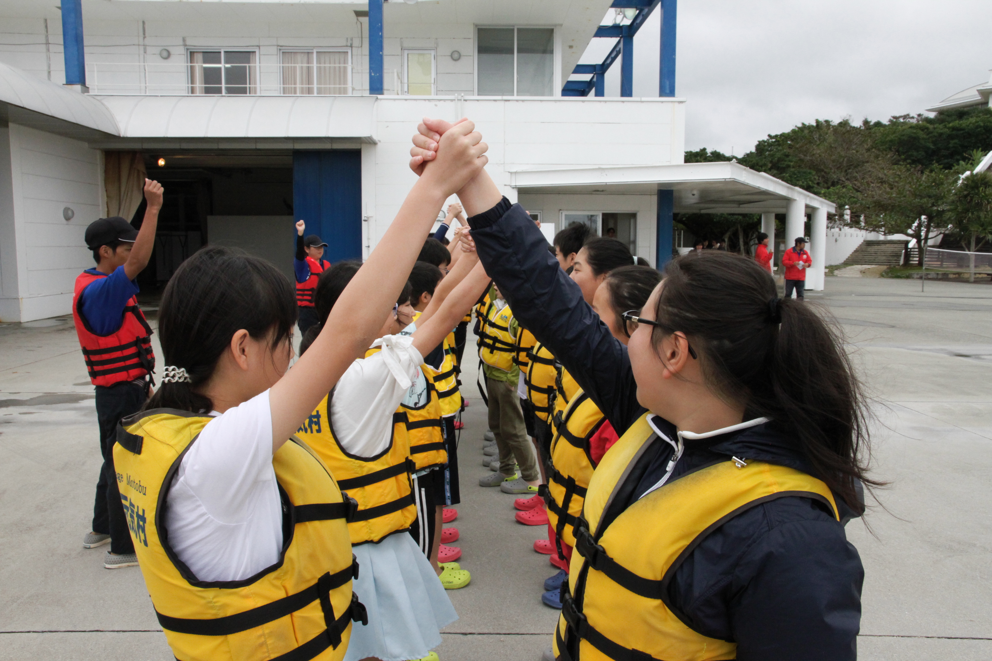 午前中は少し雨が降りましたが午後からは回復し,「もとぶ元気村」での海洋プログラムを楽しみました。