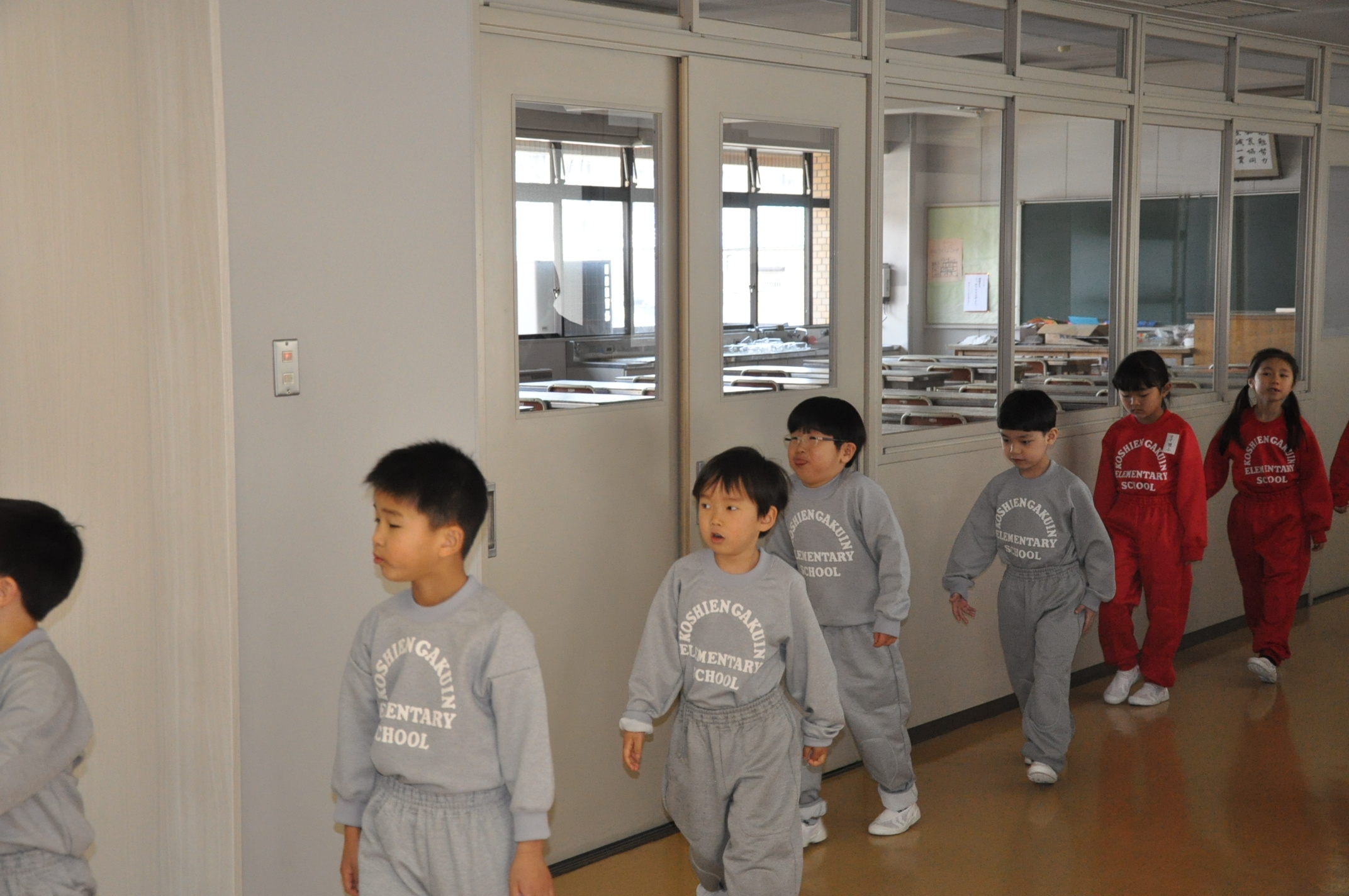 挨拶の仕方や着替えの練習をした後,入学式の練習を行いました。