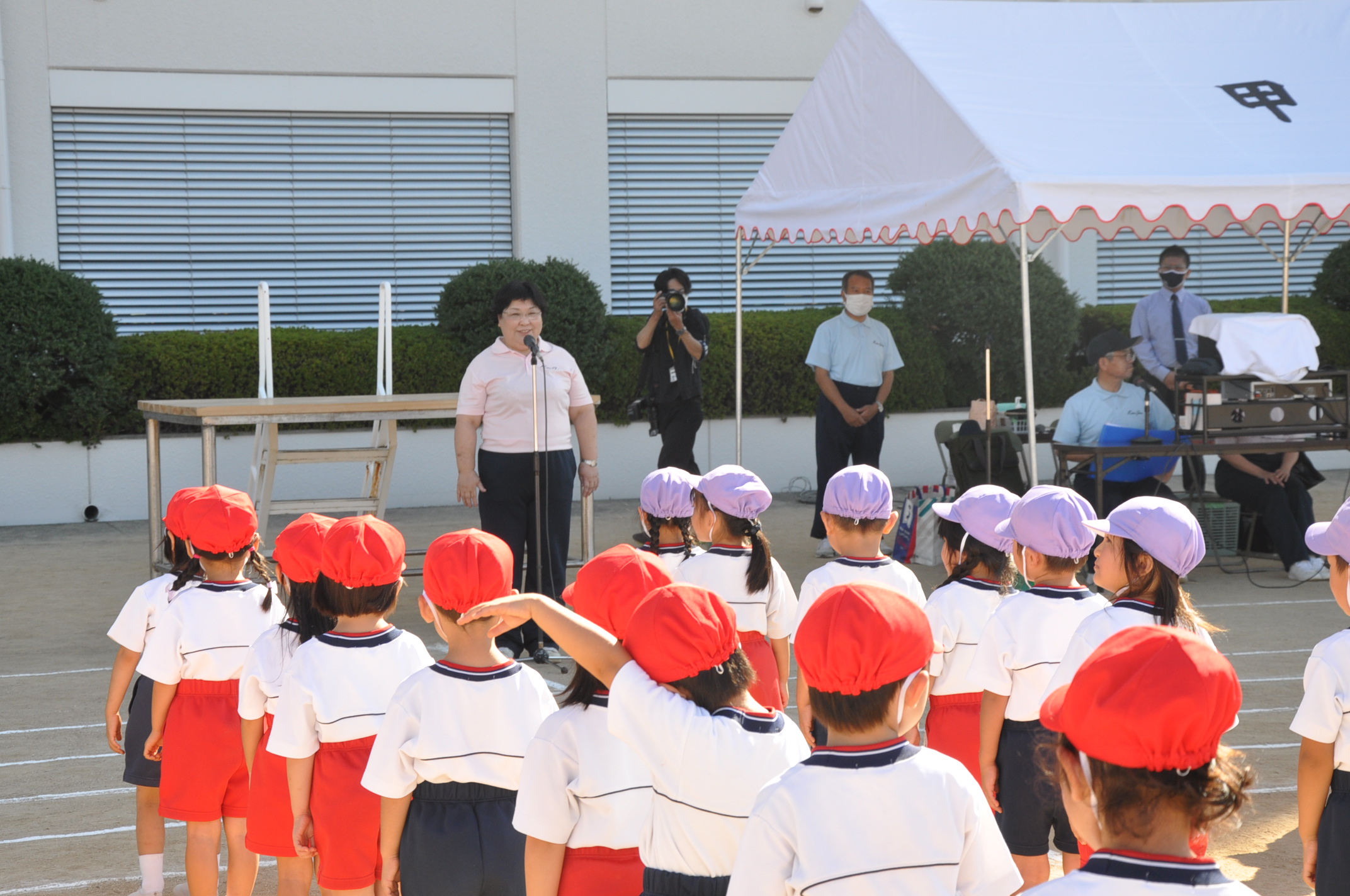 新型コロナウイルス感染防止の観点から,幼小あわせて5つの部に分け,参観者数を制限しての開催としました。