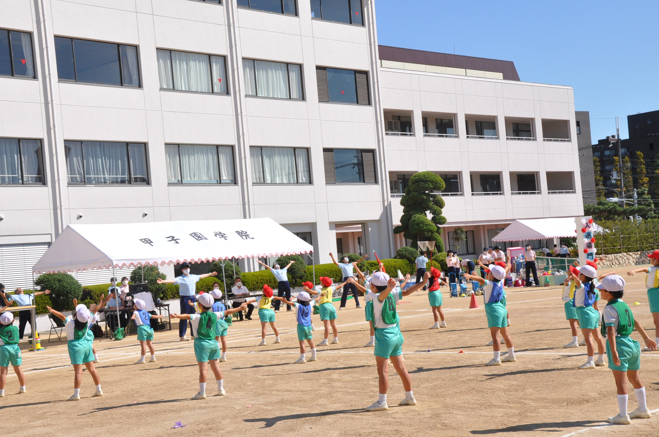 新型コロナウイルス感染防止の観点から,幼小あわせて5つの部に分け,参観者数を制限しての開催としました。