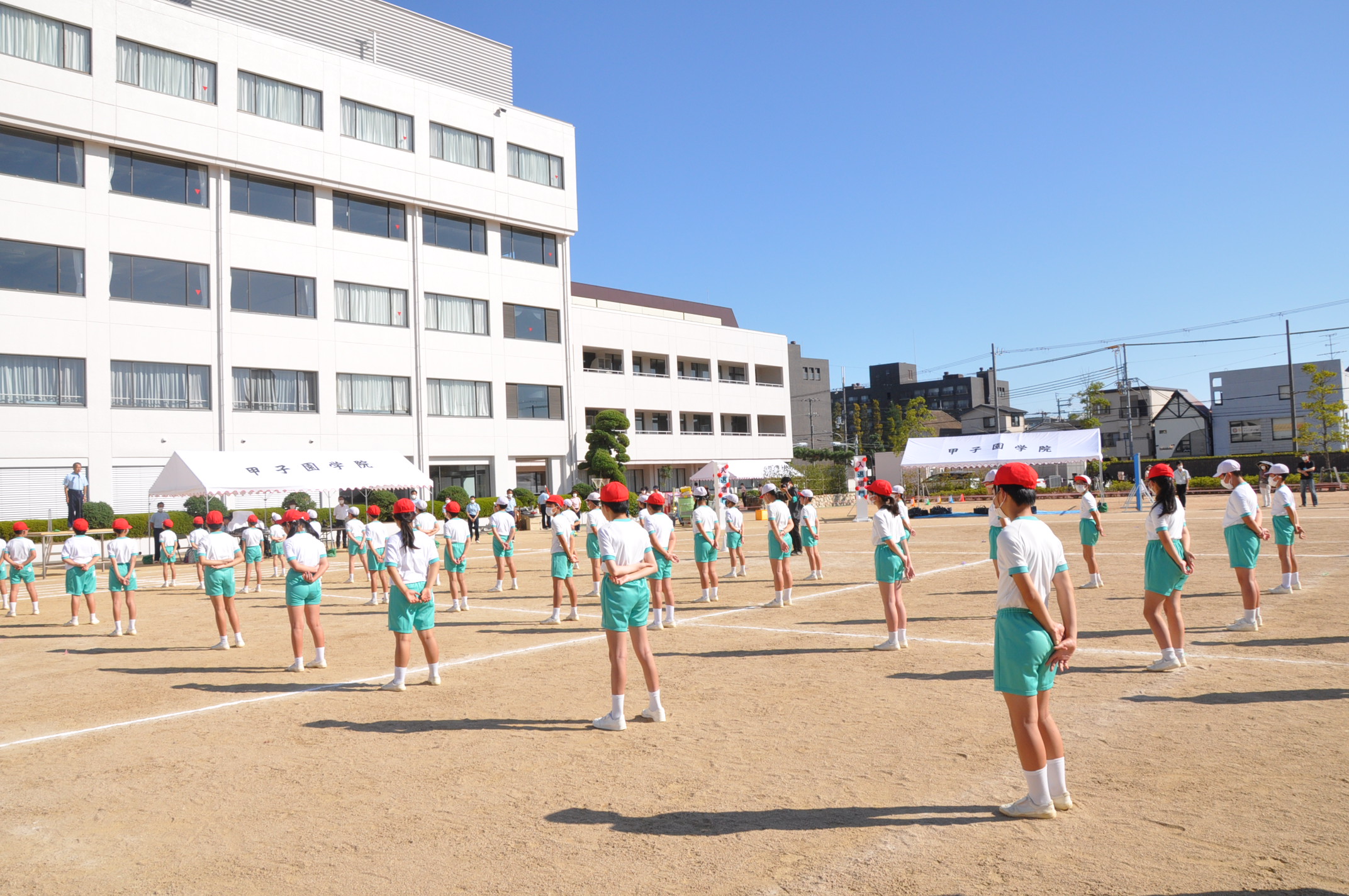 子どもたちは青空のもと,元気いっぱい演技や競技を披露しました。