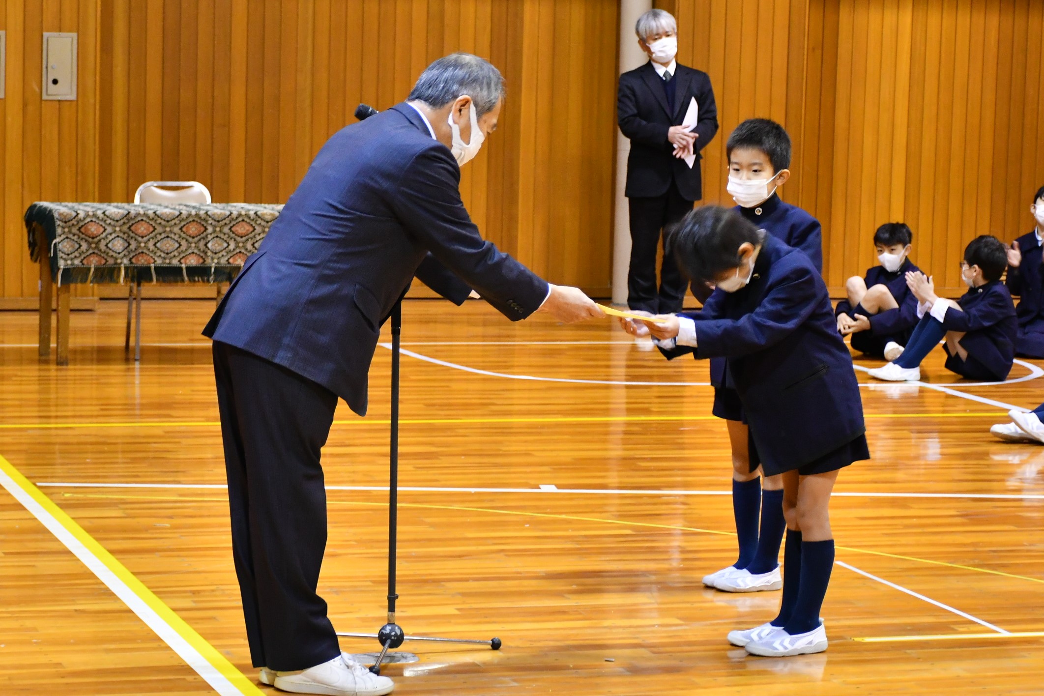 式終了後、校内マラソン大会、全校暗算、速読解力検定などの表彰式を行いました。