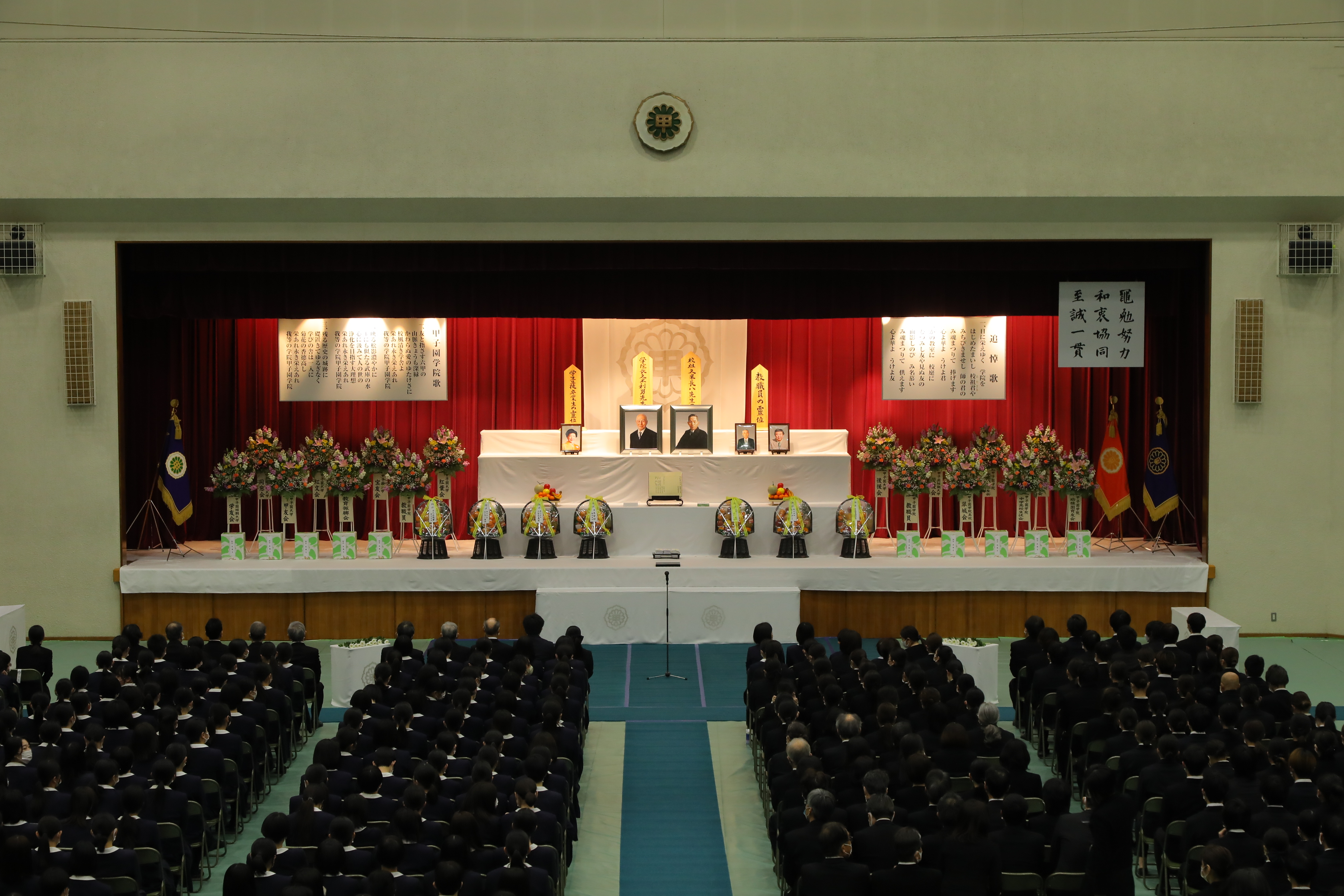 令和5年3月3日(金),校祖久米長八先生,前学院長久米利男先生はじめ,学院関係物故者の追悼式を厳粛な雰囲気の中で行いました。コロナ禍の続く中,規模を縮小して行いました。久米知子学院長先生の追悼の言葉の後,各学校園の代表による献花をしました。式内で,中高吹奏楽部による学院歌の演奏が行われました。