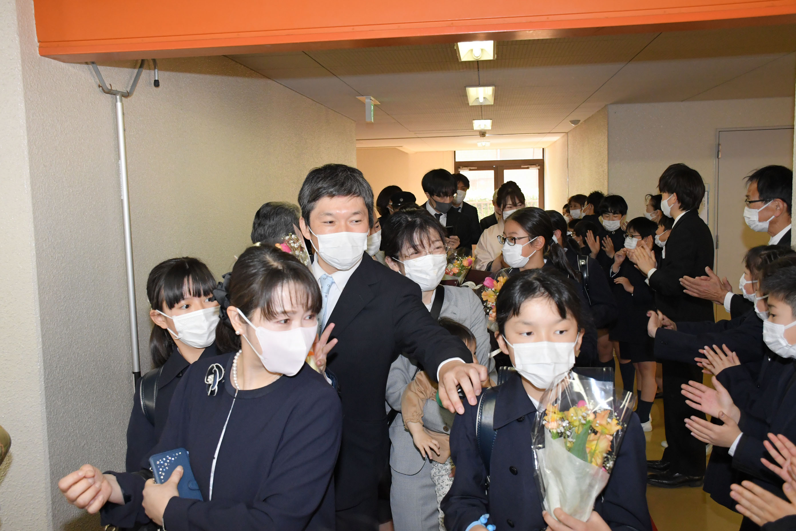 保護者に加え,4年ぶりに参列することができた在校生に見送られ,6年生は小学校を巣立っていきました。