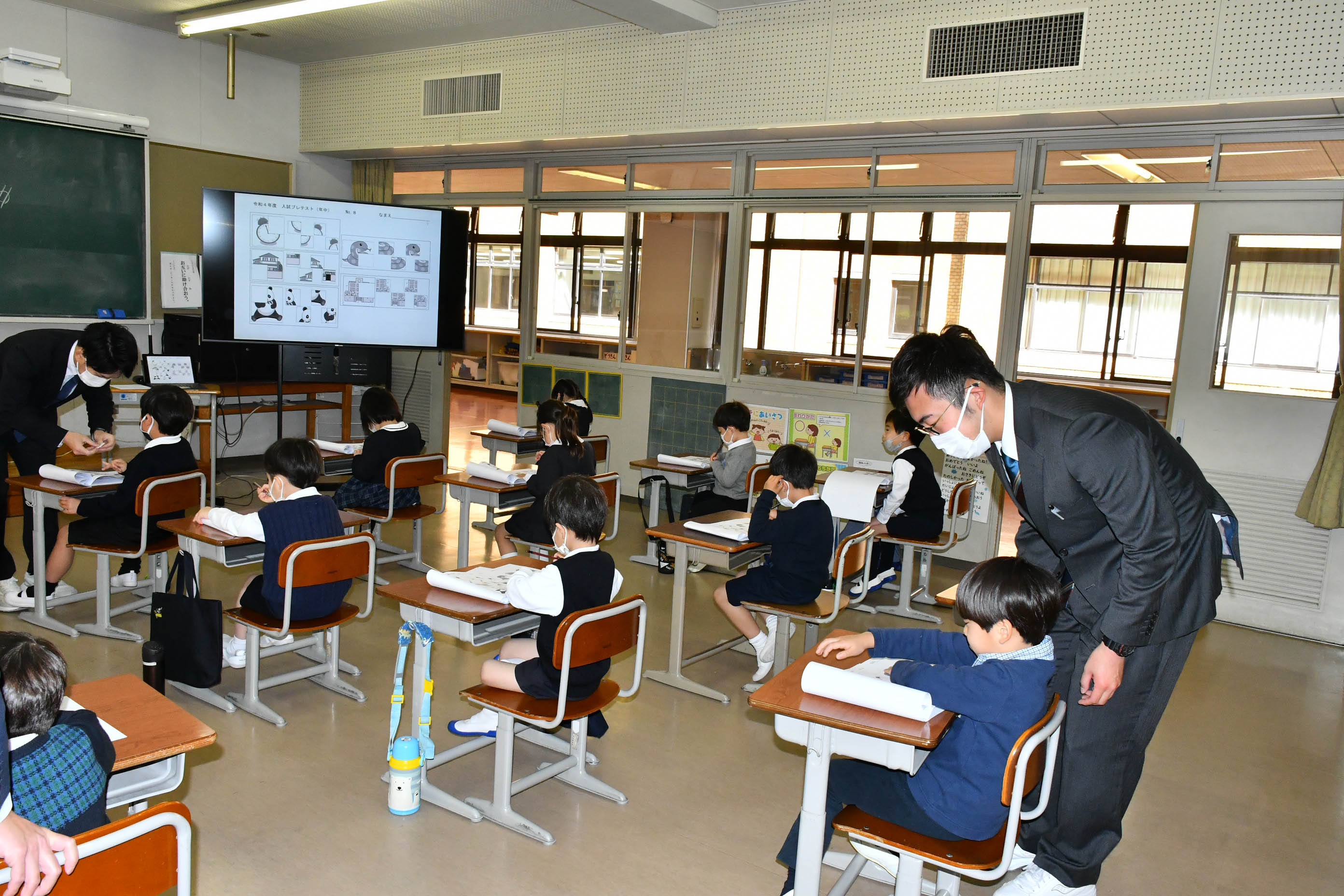 子どもたちがプレテストや体験学習をしている間に,保護者の方には学校紹介やテスト解説を聞いていただき,また学校内を見学していただきました。