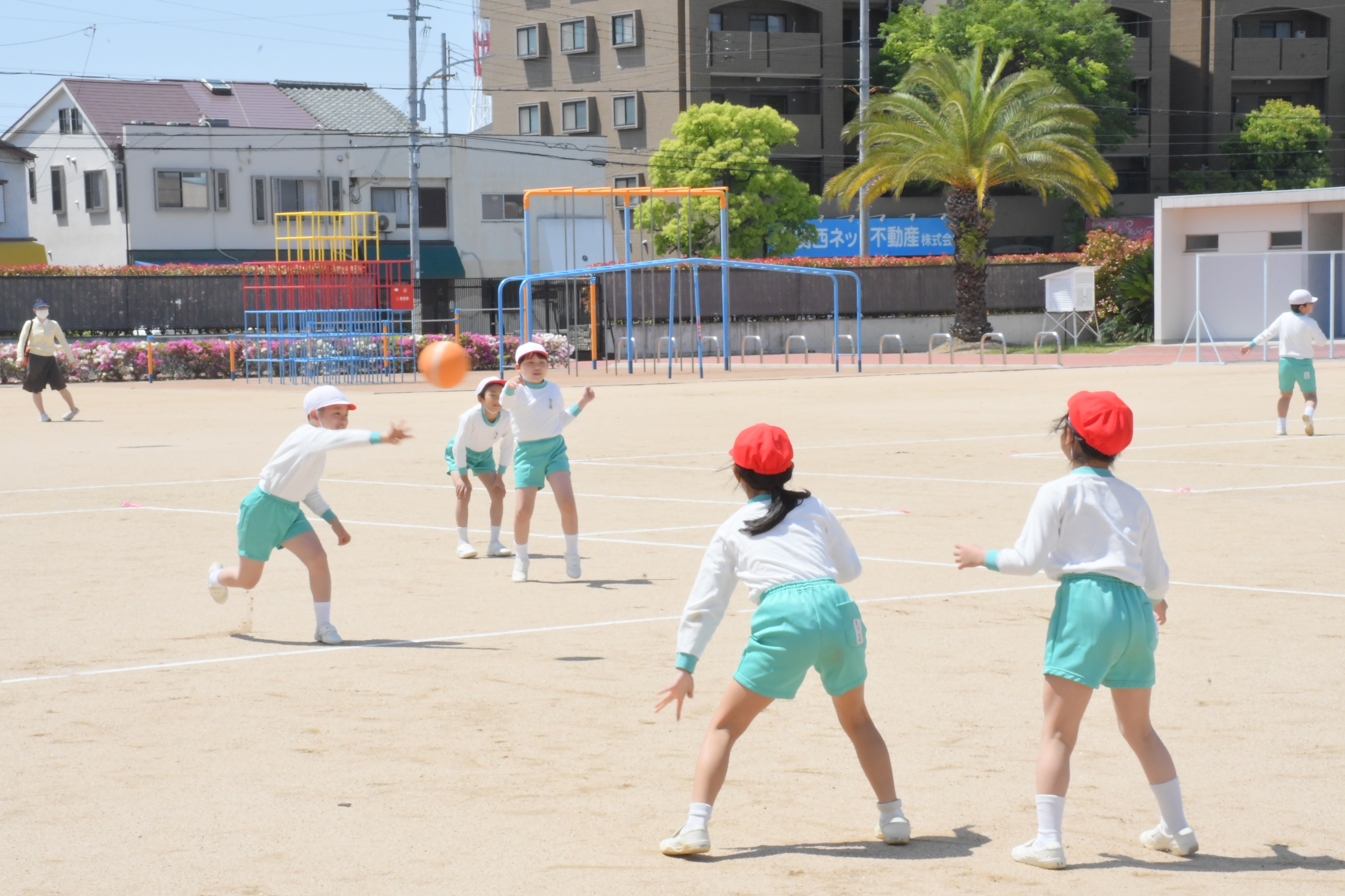 1・2年生は転がしドッジボール、3・4年生はドッジボール、5・6年生は王様ドッジボールを行いました。