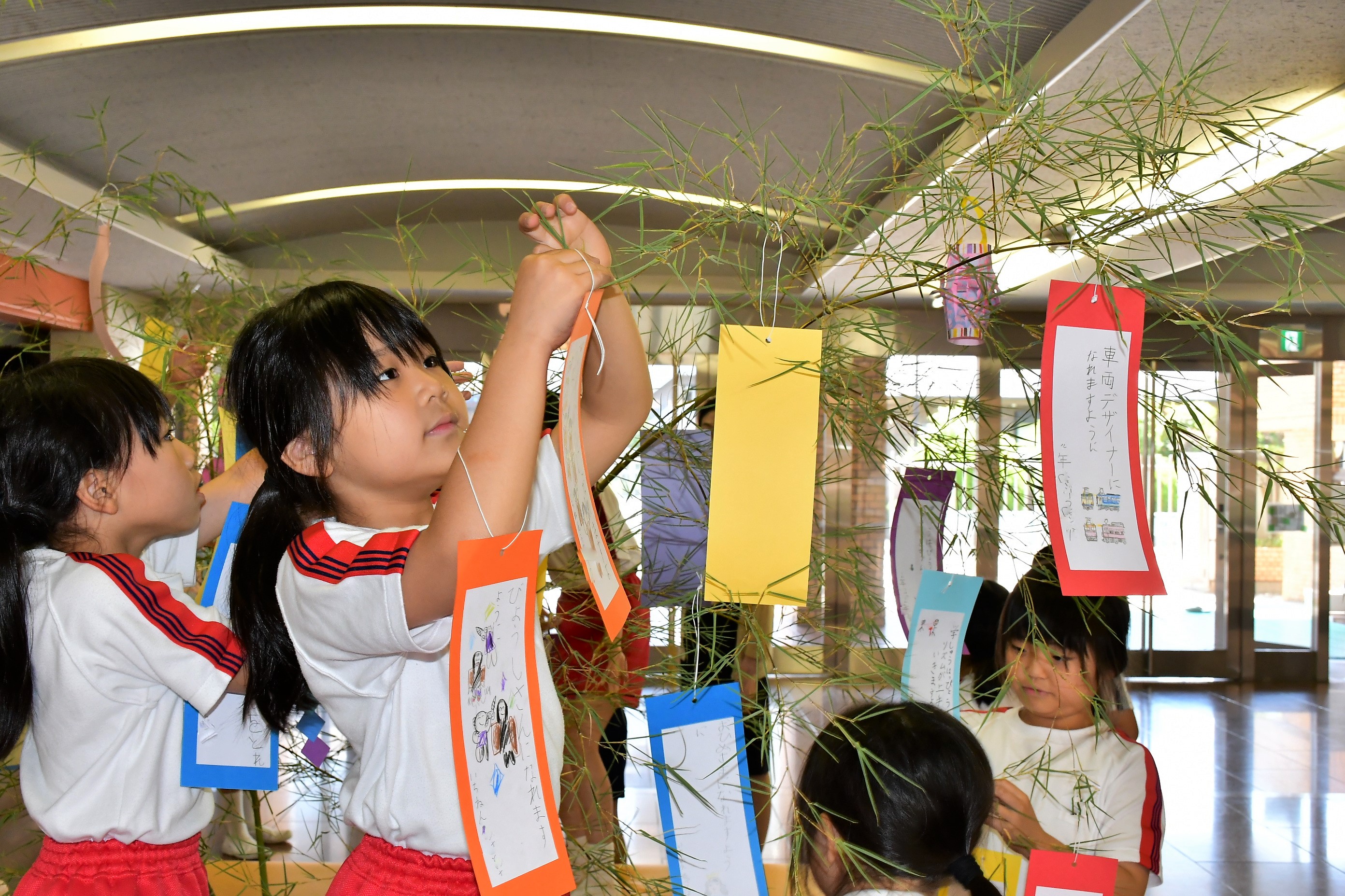 七夕に向け、短冊にそれぞれの願いを書きました。笹に託した子どもたちの願いが叶いますように…!