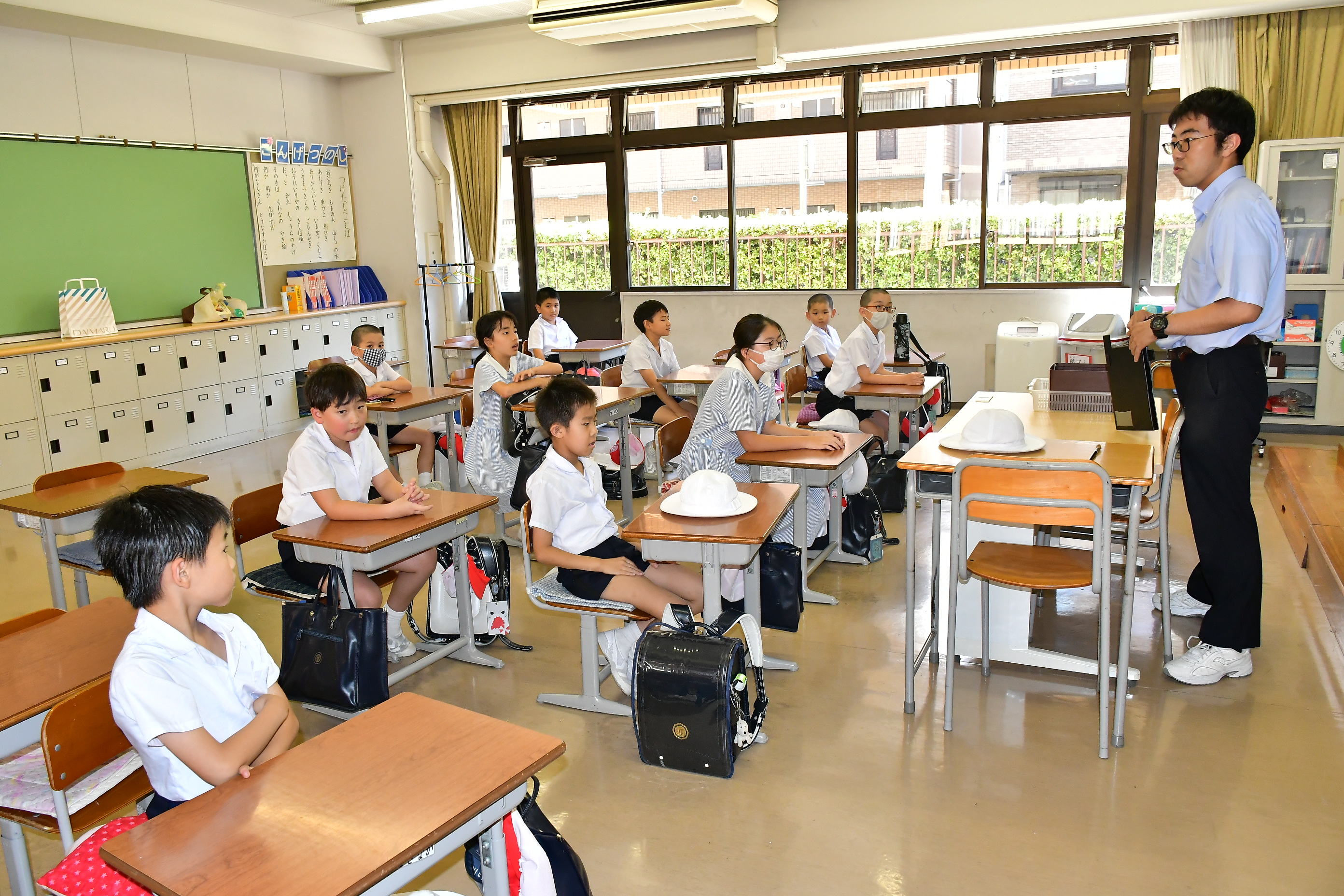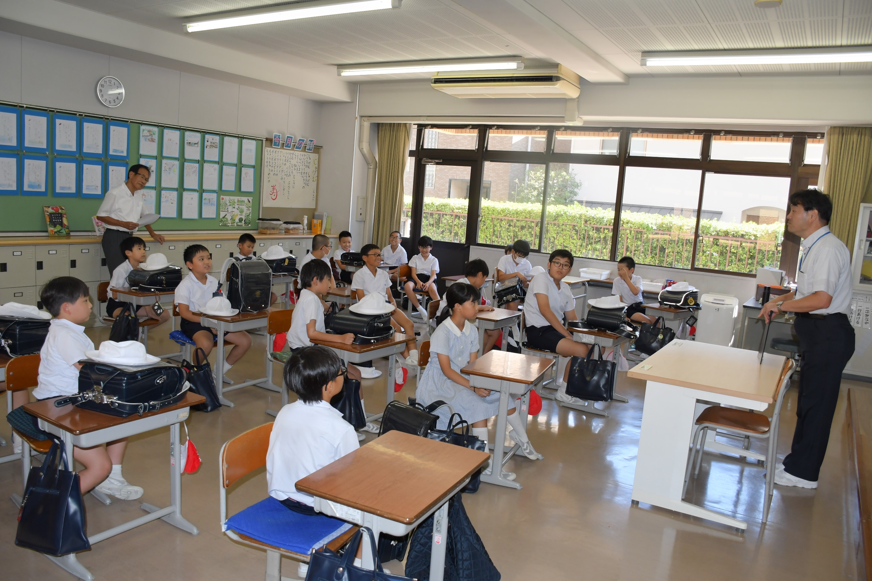 9月13日(水)、集団下校を実施しました。徒歩や各交通機関別に分かれ、登下校中のマナーを守ることについて話を聞いた後、下校しました。