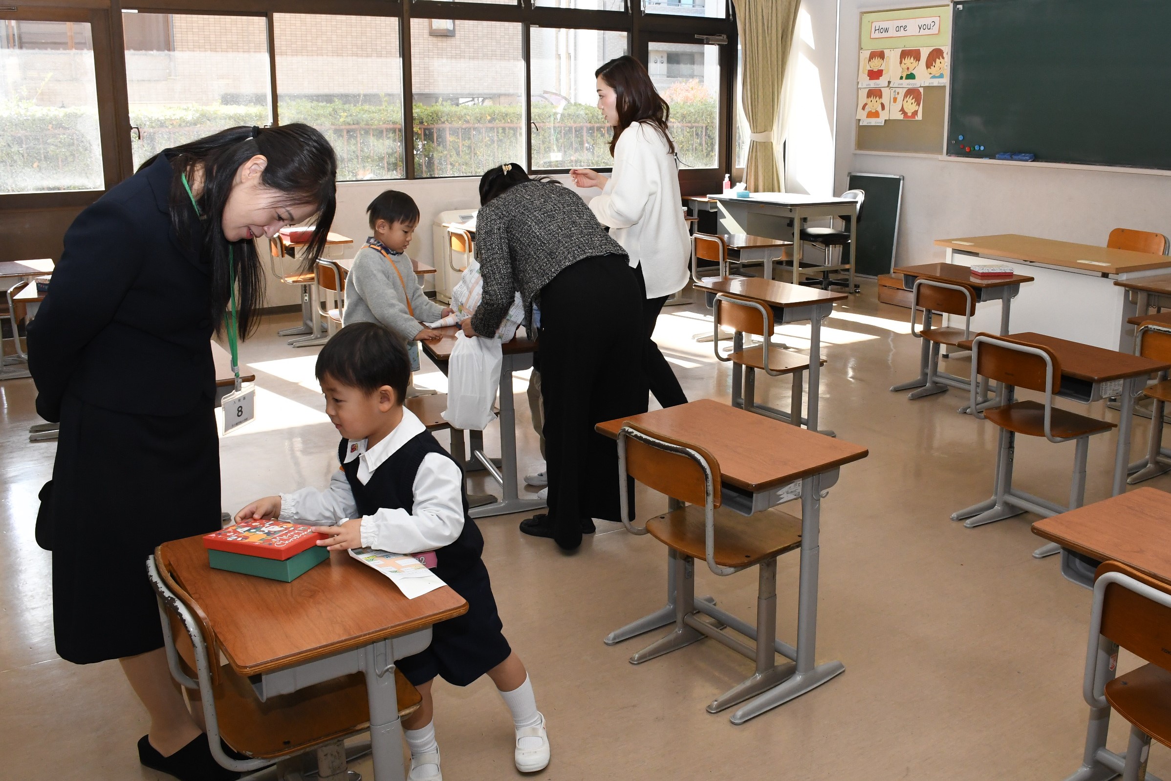 子供たちは入試プレテスト、保護者の皆様にはプレテストの解説や学校説明を行った後、親子で参加の学校探検を行い、ミッションをクリアしながらクリスマスリースの材料をゲットしました。