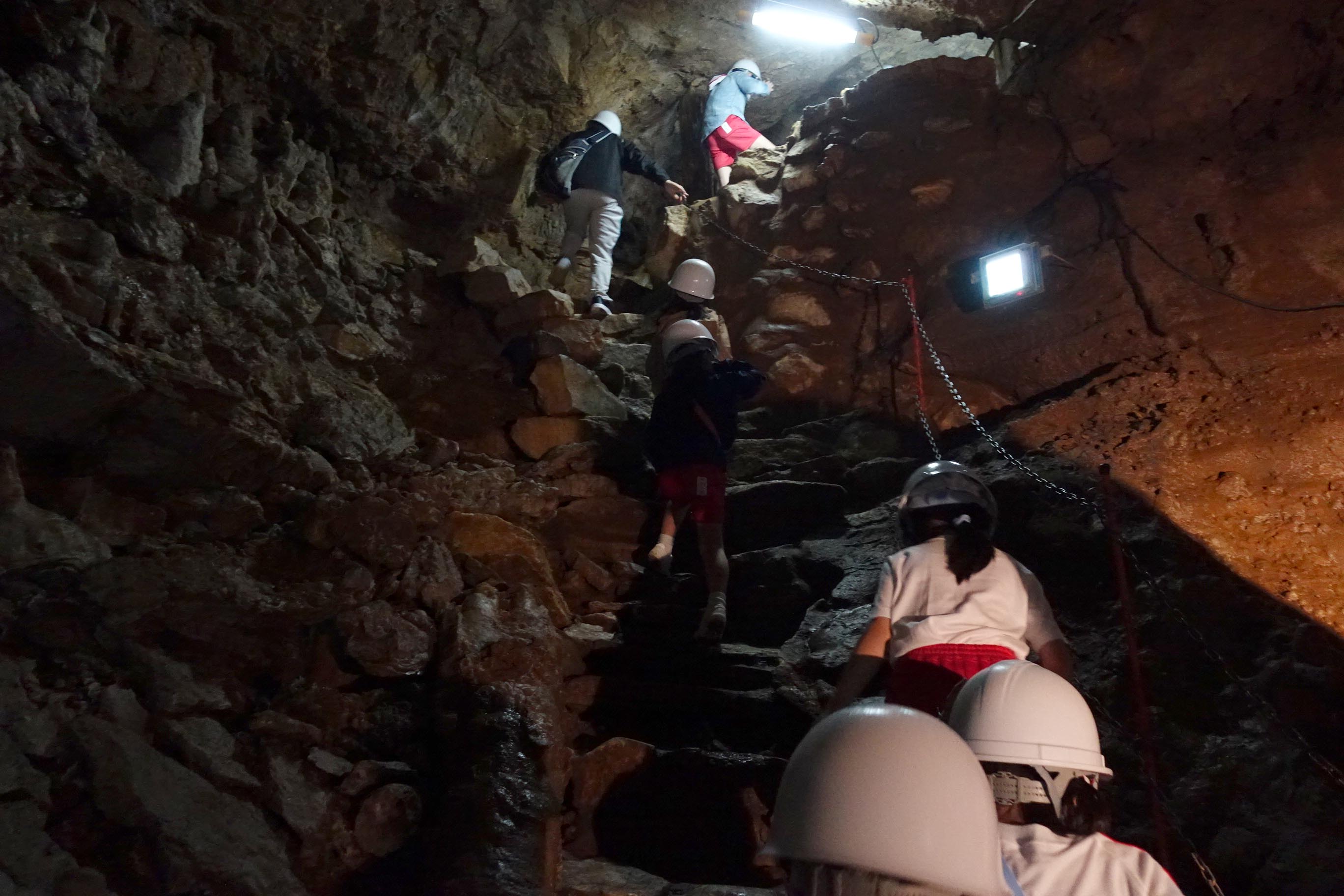 2日目の面不動とはまた違った雰囲気で,狭い洞窟をヘルメットをかぶり通り抜け,気分はさながら探検家になったようでした。