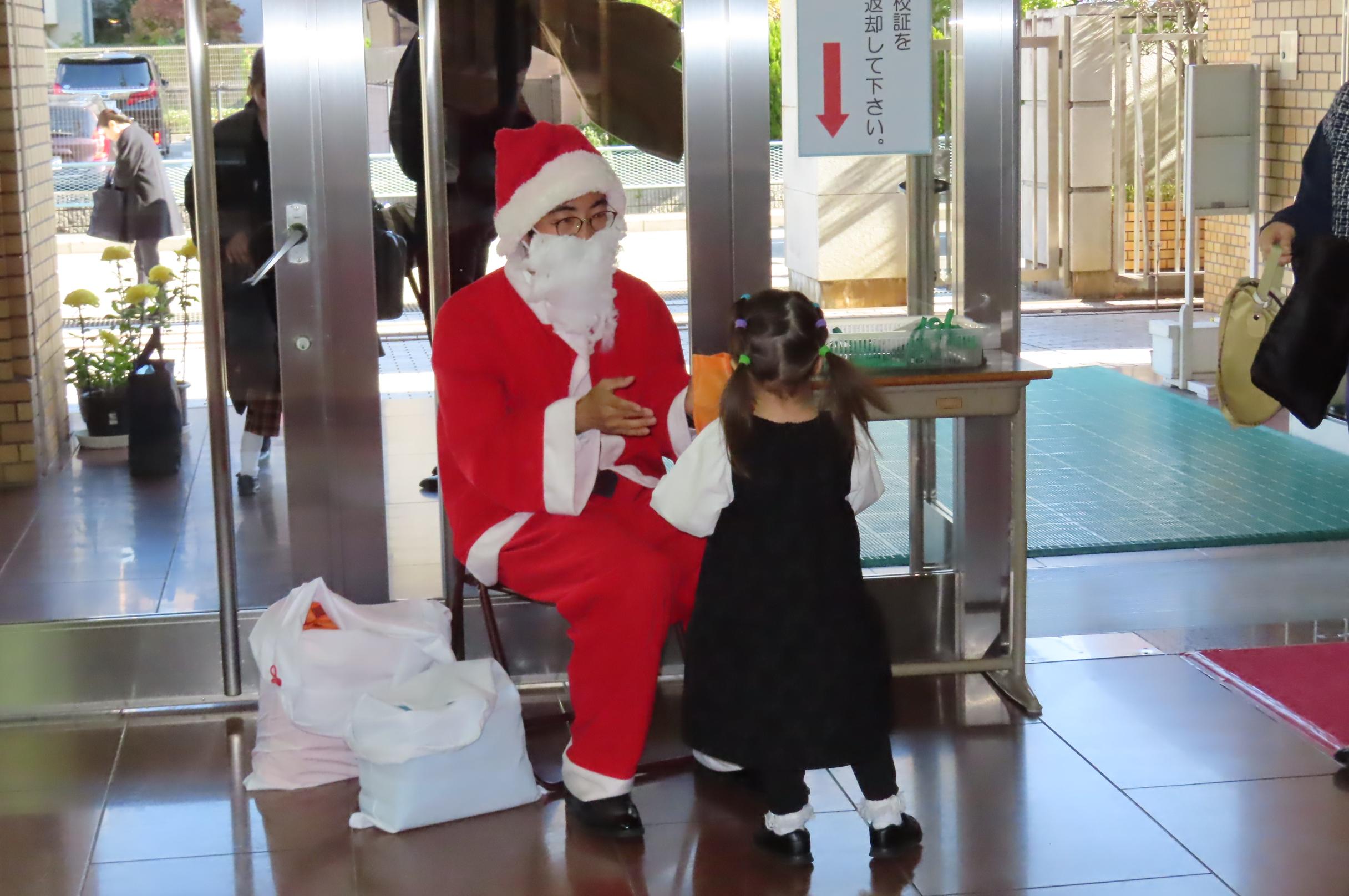 子供たちは入試プレテスト、保護者の皆様にはプレテストの解説や学校説明を行った後、親子で参加の学校探検を行い、各教室で様々な授業体験を行いました。最後にはサンタさんからプレゼントを受け取りました。
