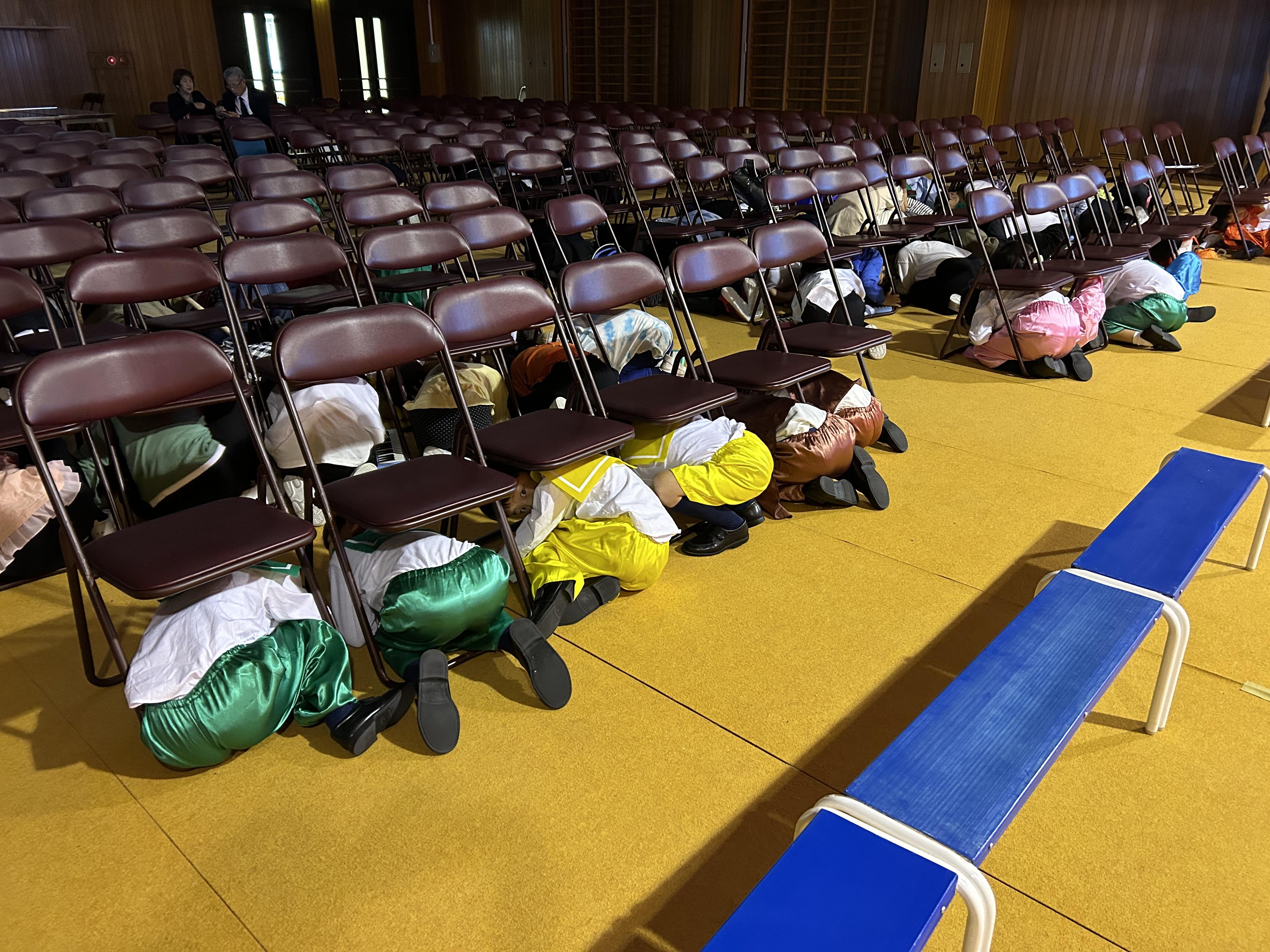 本日午前10時、令和6年度兵庫県津波一斉避難訓練に参加しました。学習発表会の予行演習中でしたが、児童は素早くシェイクアウトの姿勢「まず低く!頭を守り!動かない!」を行いました。地震はいつ、どこで起こるかわかりません。どんなときでも命を守ることを優先した行動ができるよう、これからも日ごろの訓練を大切にしましょう。